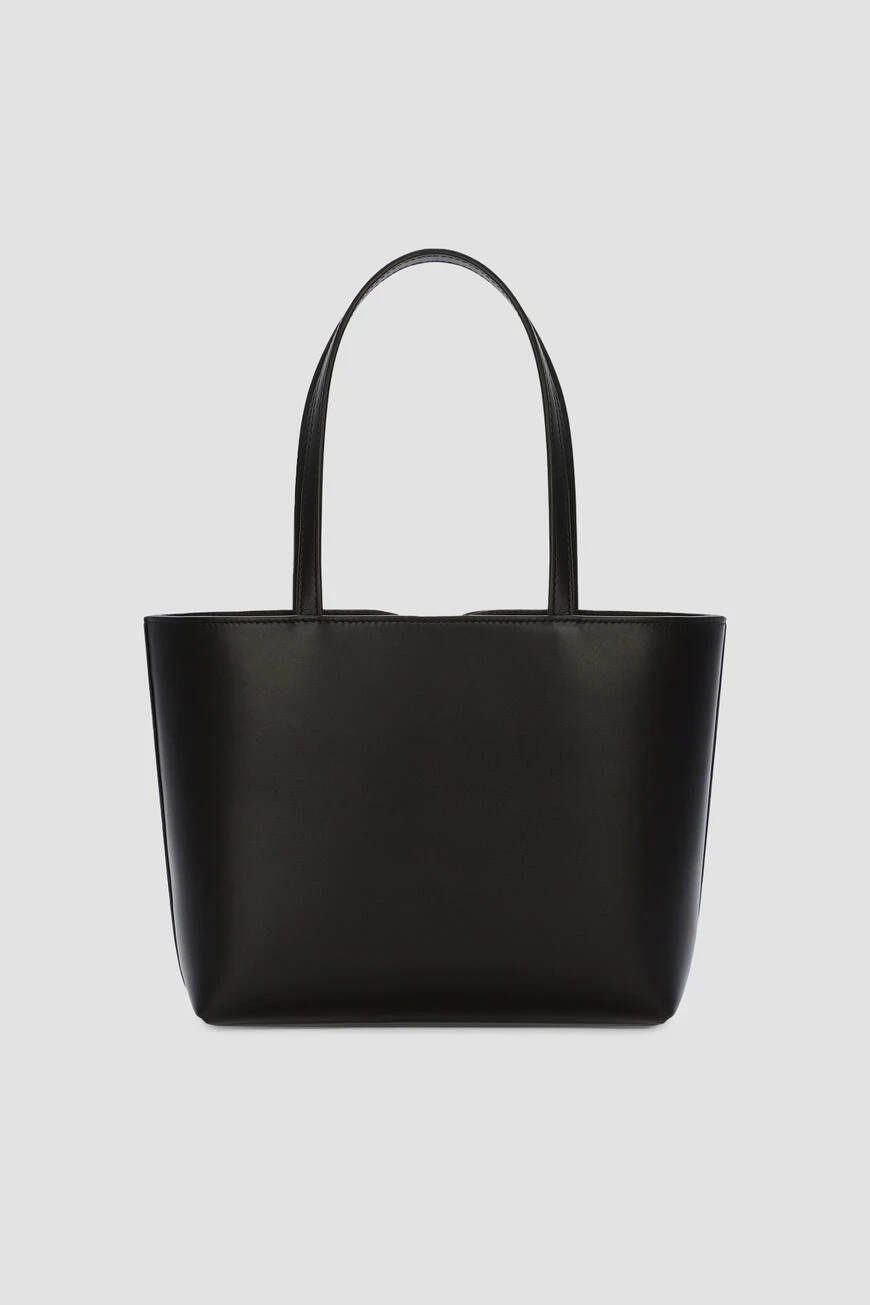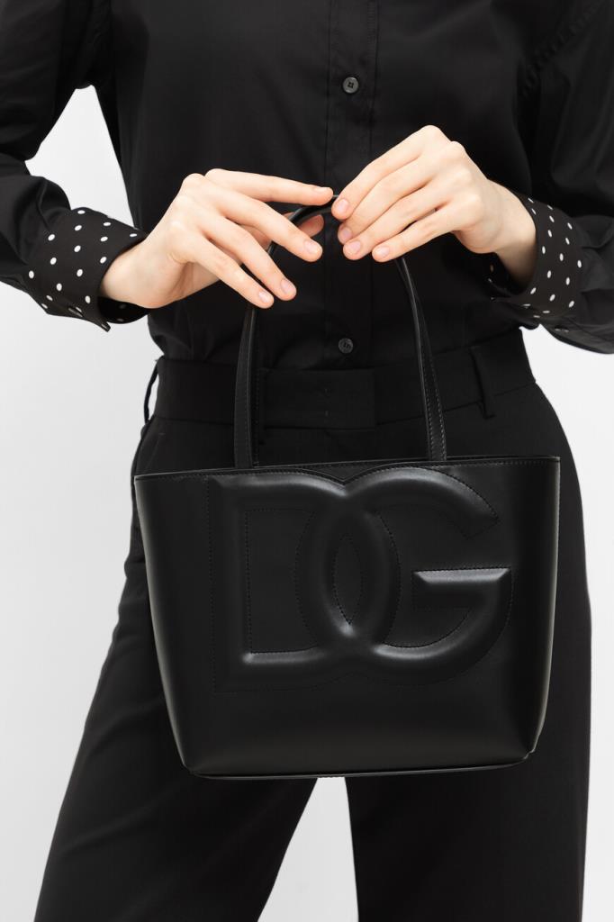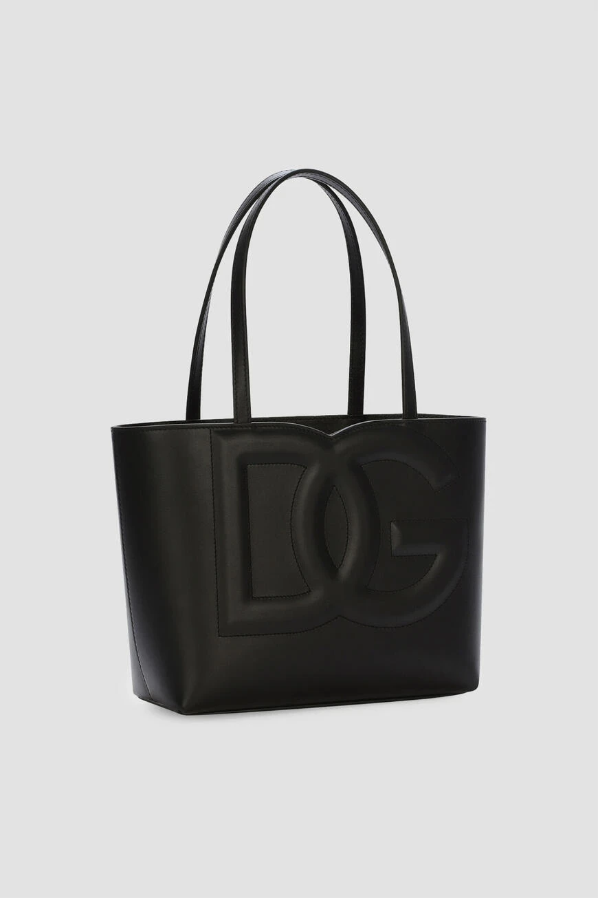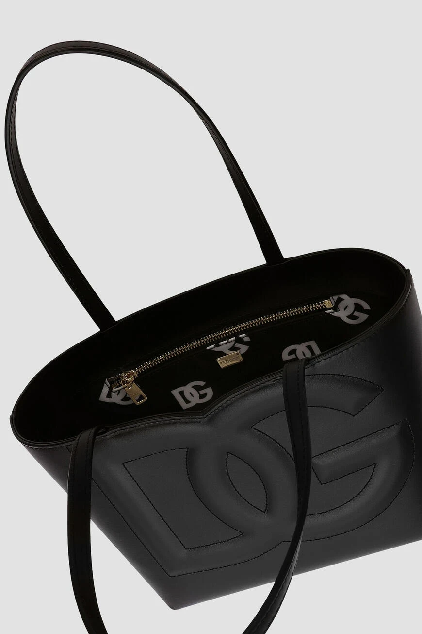 Чёрная сумка-шоппер DG Logo Bag от Dolce & Gabbana. Культовые стилистические коды в современной интерпретации легли в основу нового видения ДНК Дома. Небольшая модель изысканной геометрической формы отдаёт дань уважения перекрёстному логотипу, ставшему бесспорным ключевым атрибутом коллекции. Практичный аксессуар изготовлен из гладкой телячьей кожи и украшен прошитым рельефным символом DG с трёхмерным эффектом.