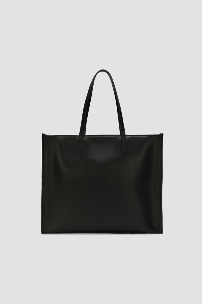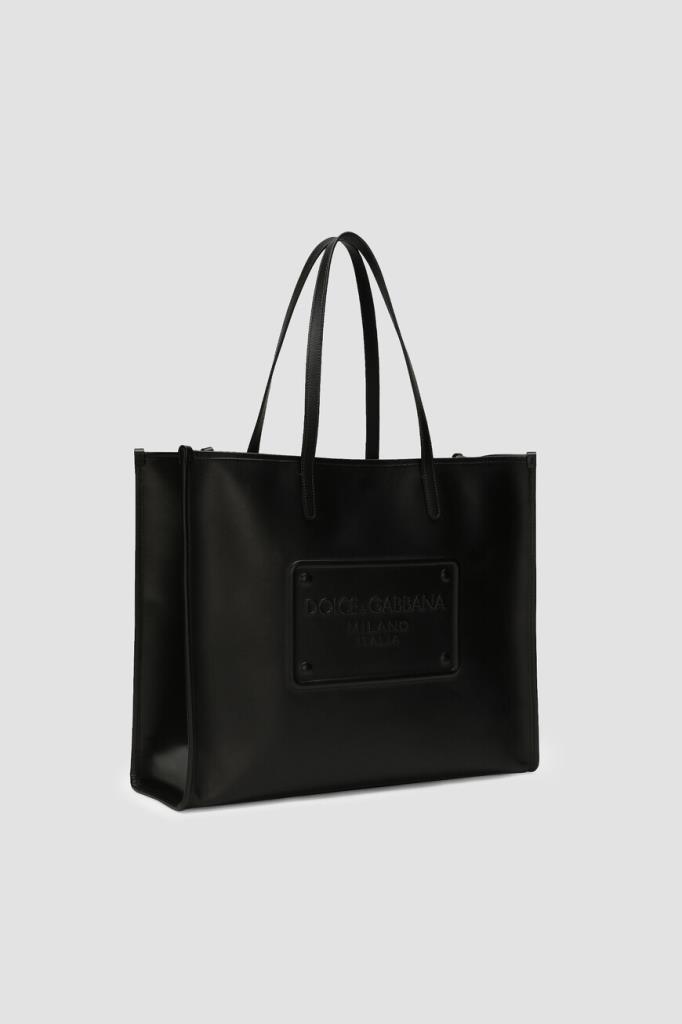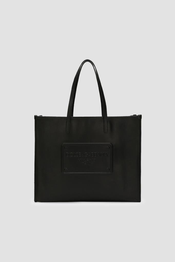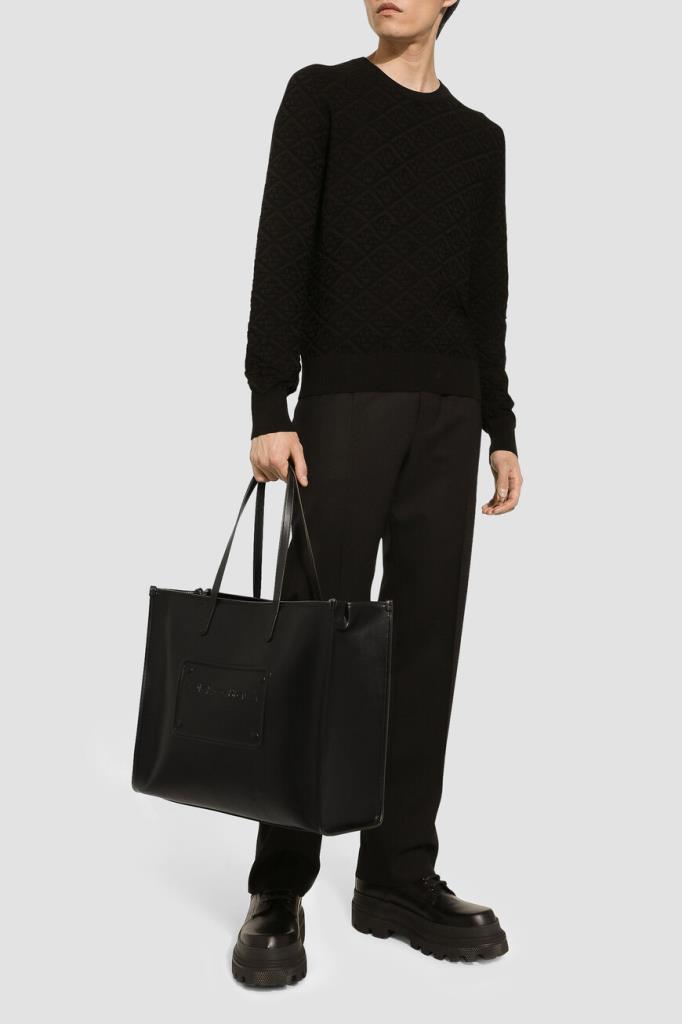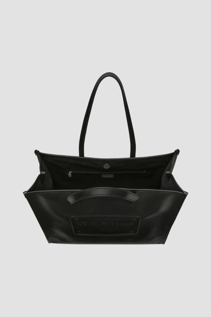 Вместительная сумка-шоппер чёрного цвета от Dolce & Gabbana. Аксессуар из мягкой гладкой кожи телёнка отличается новым объёмом и изысканной геометрией. Атрибутами Дома являются рельефная прямоугольная деталь с логотипом Dolce&Gabbana Milano на лицевой стенке и серебристый металлический лейбл с гравировкой во внутренней части изделия.