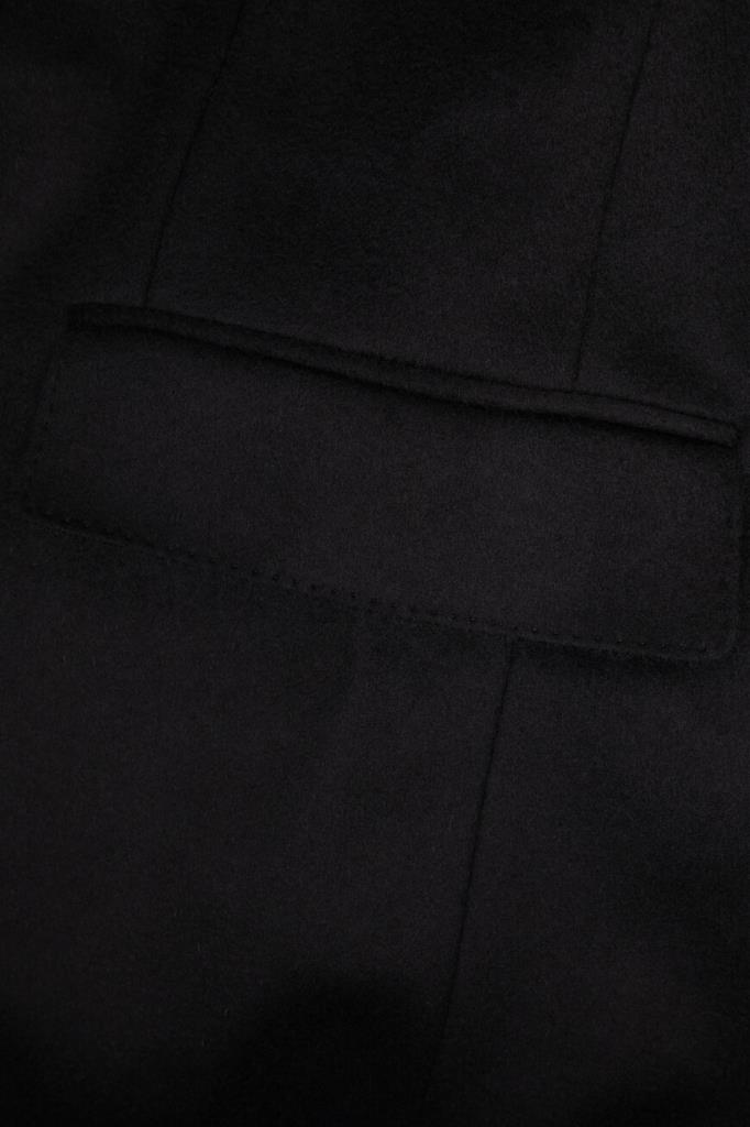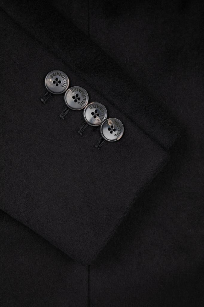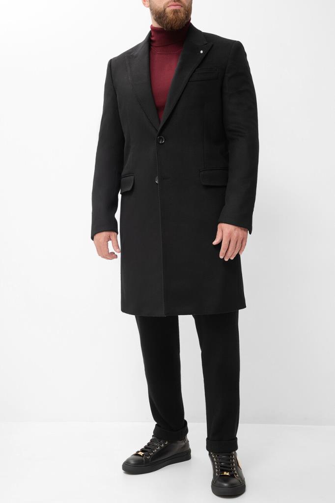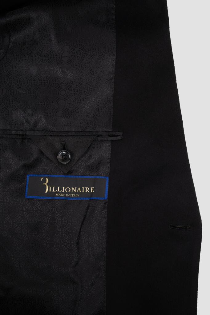 Пальто прямого силуэта от Billionaire. Модель изготовлена из мягкого трикотажа на основе натуральной вирджинской шерсти, кашемира и прочного нейлона чёрного базового цвета. Фасон изделия предполагает четыре прорезных кармана и застёжку на крупные роговые пуговицы. Декором выступают миниатюрные гербы Дома, выполненные из серебристого металла, на левом лацкане и кокетке.