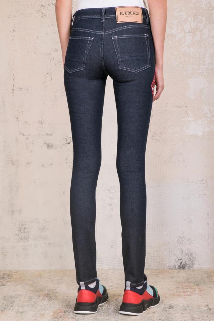 Женские джинсы ICEBERG из лёгкого эластичного денима чёрного цвета с заметным меланжем. Модель зауженного книзу облегающего силуэта (skinny). Застёгивается на молнию и пуговицу-клёпку. Традиционно: пять карманов (на маленьком – фирменная заклёпка) и кожаный лейбл. Фишка модели: крупная контрастная вышивка пайетками.