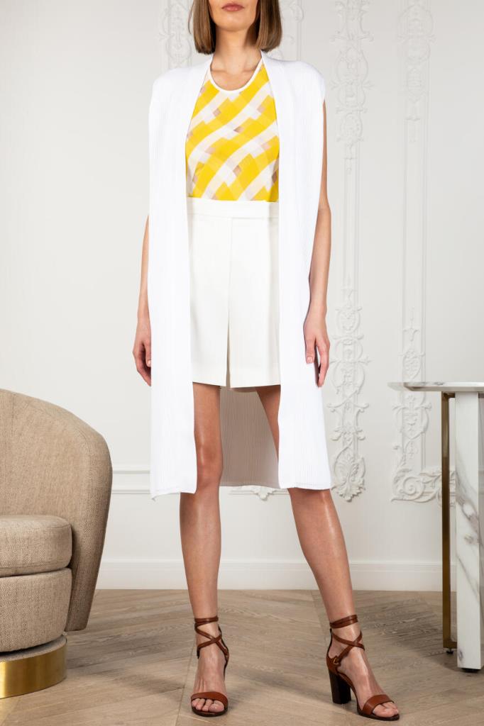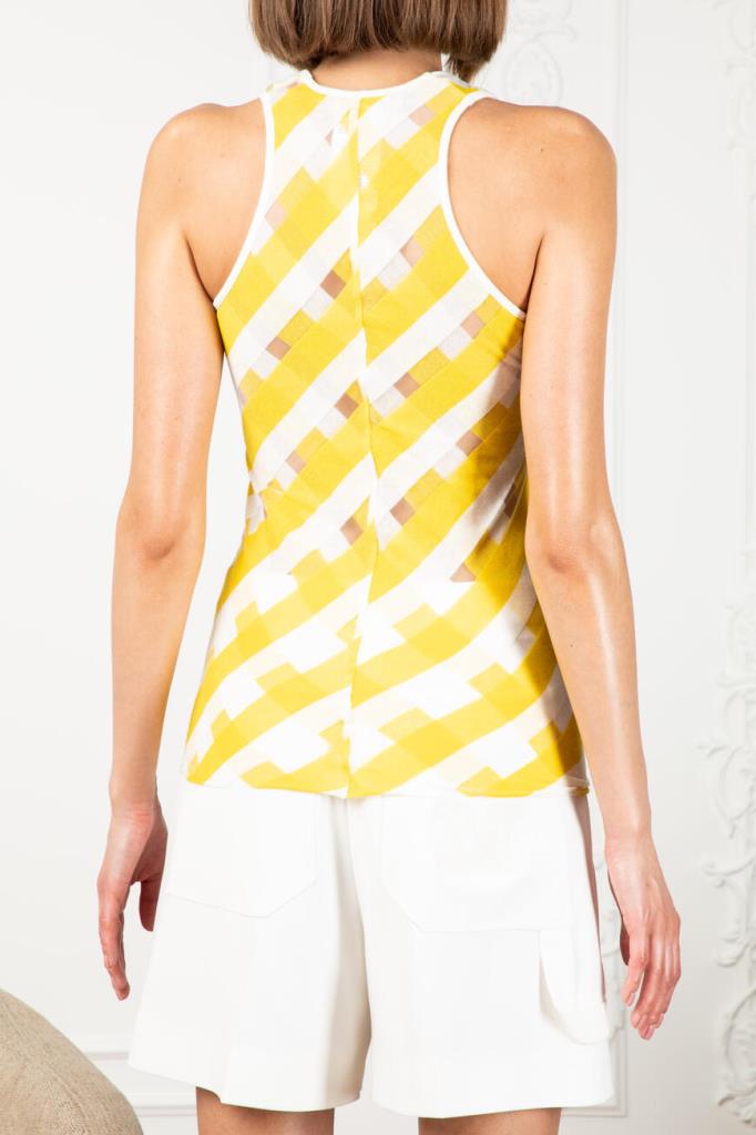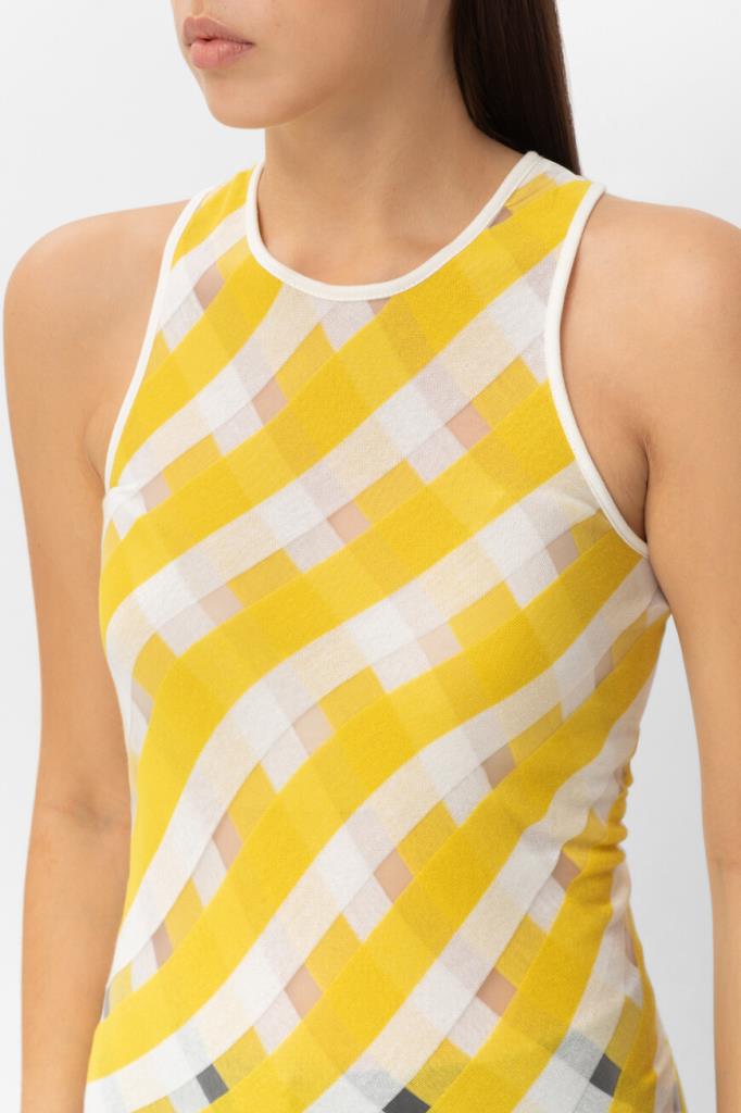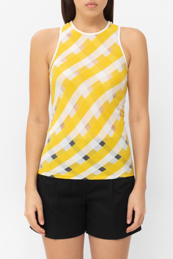 Лёгкий женский топ от британского бренда STELLA McCARTNEY. Изготовлен из очень тонкого, полупрозрачного трикотажного полотна. Хлопковая ткань мягкая и очень комфортная для жаркой погоды. Изделие «дышит» и отлично впитывает влагу. Модель без рукавов, облегает фигуру. Двойной слой ткани создаёт интересный визуальный эффект. Подойдёт для гардероба в стиле casual. Сочетается с однотонными юбками и брюками, джинсами и шортами.