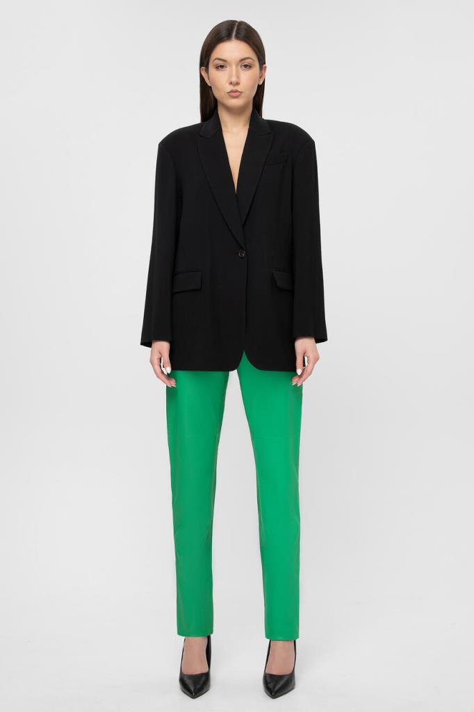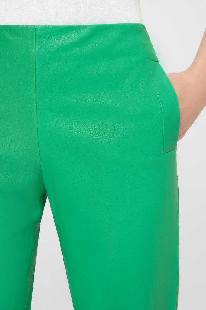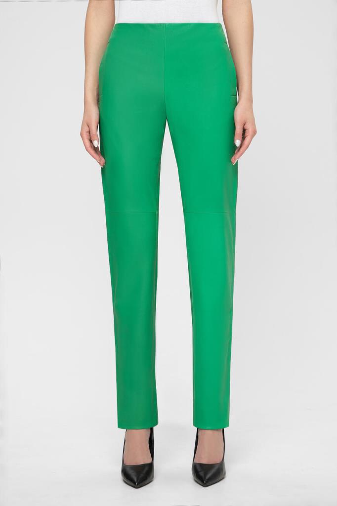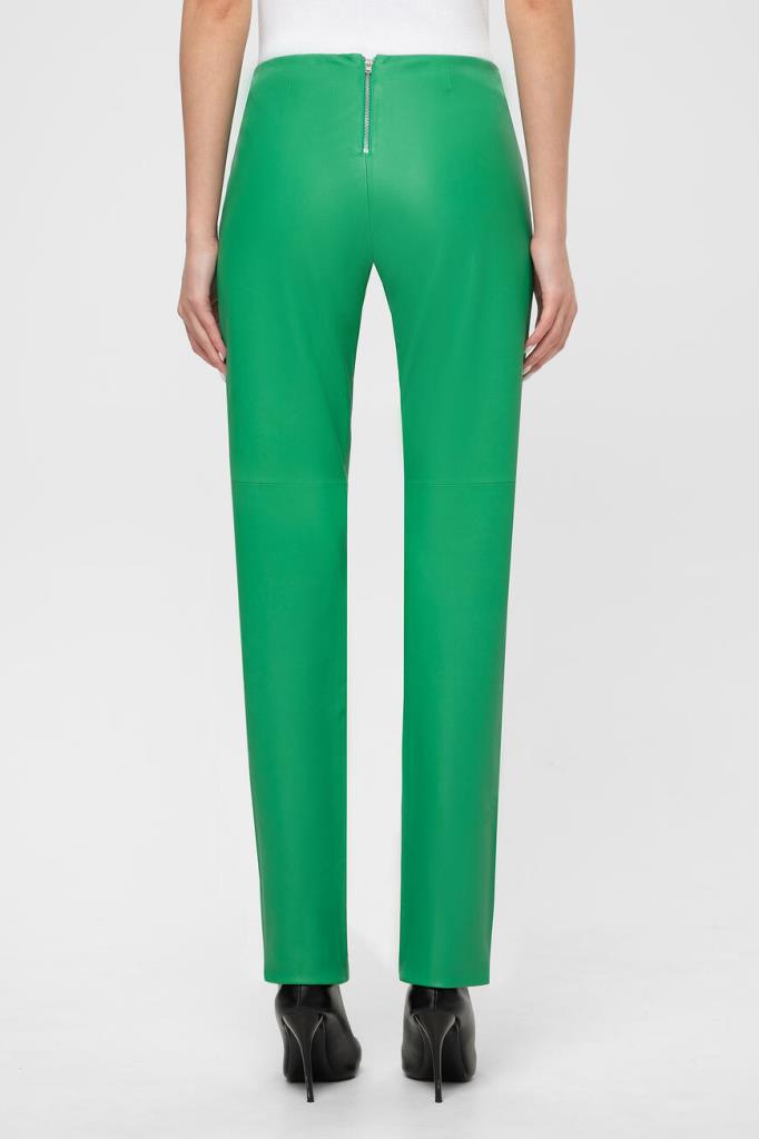 Стильные женские брюки BOTTEGA VENETA из мягкой натуральной кожи ягнёнка изысканного насыщенного зелёного оттенка. Лаконичная модель эффектного зауженного книзу (полуоблегающего) кроя, с высокой посадкой на талии, двумя прорезными карманами с вертикальным входом по бокам и удобной застёжкой на молнию сзади.