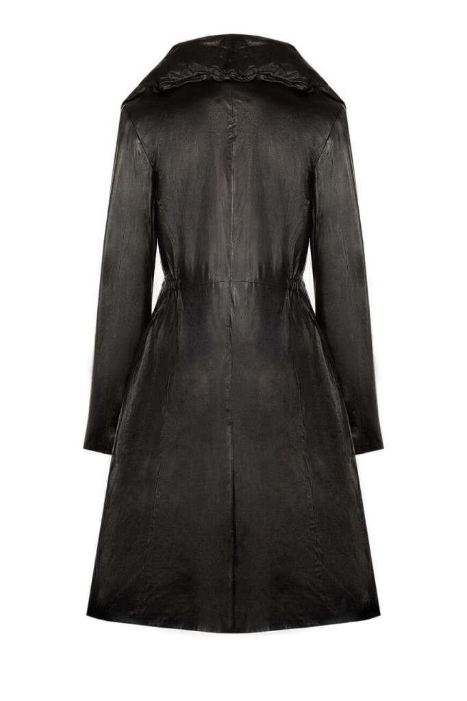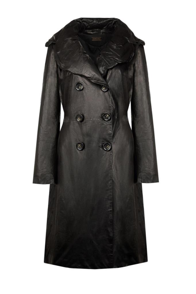 Роскошный женский плащ Harmanli из мягкой натуральной кожи телёнка универсального чёрного цвета.