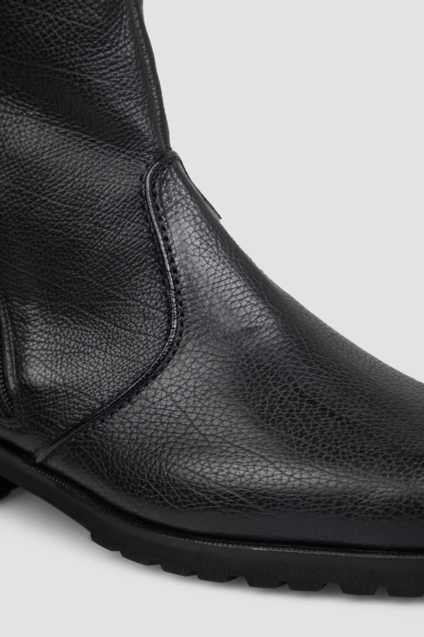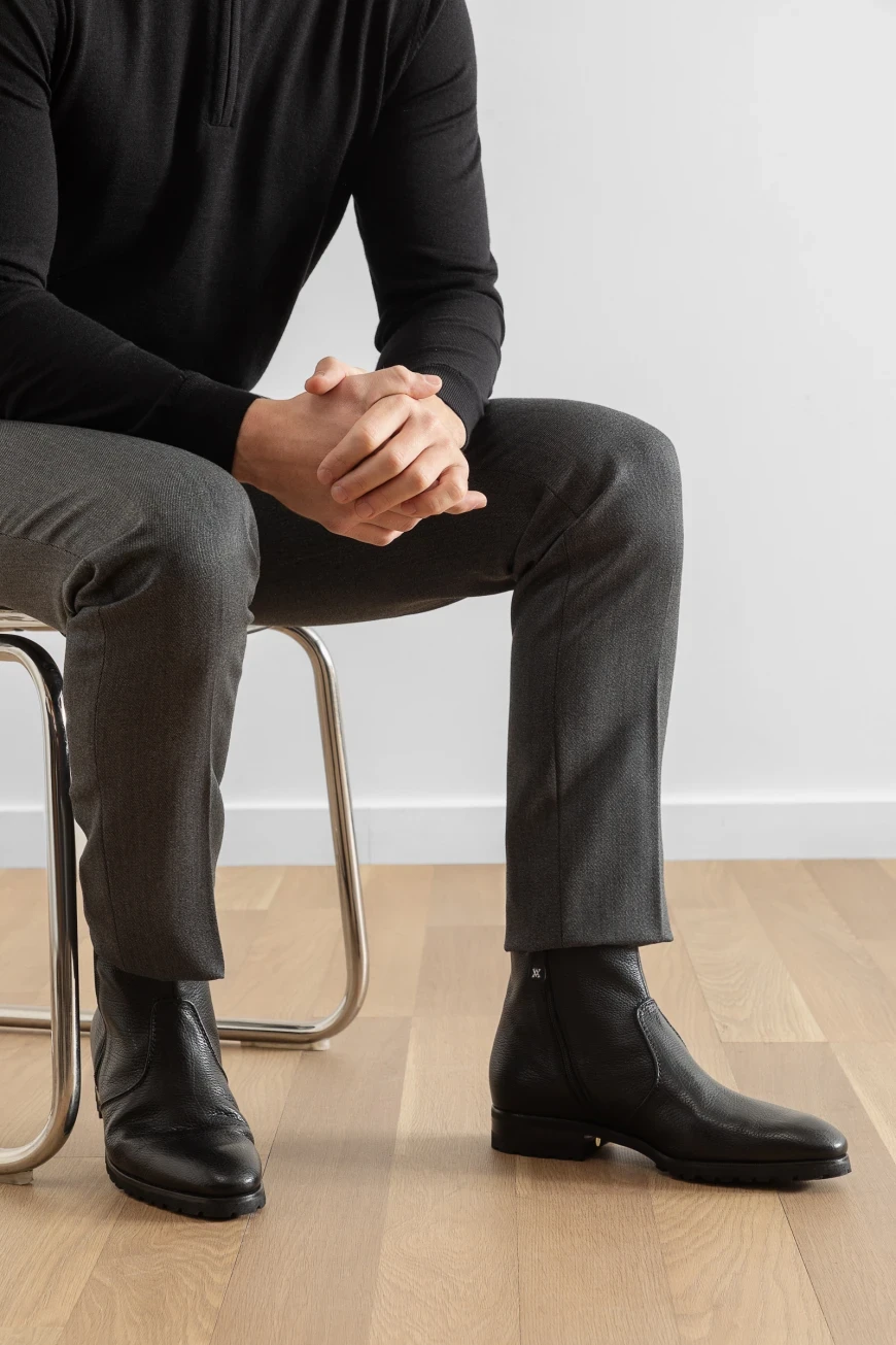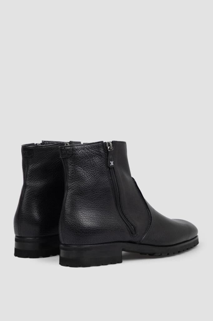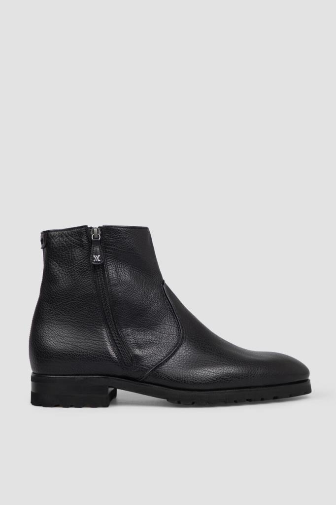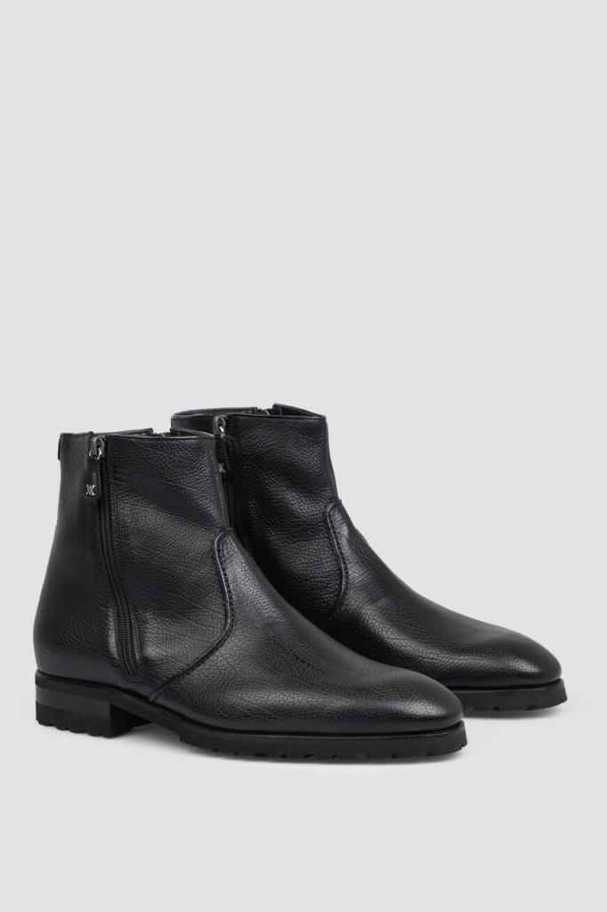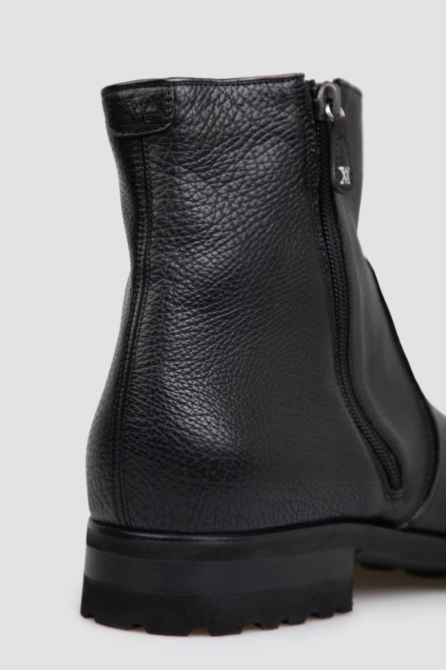 Кожаные ботинки на молнии от бренда ARTIOLI. Фасон повседневной модели предполагает вытянутый округлый носок и объёмную подошву с рифлением снизу. При создании этой пары традиционный ручной труд мастеров сочетался с инновационными технологиями.