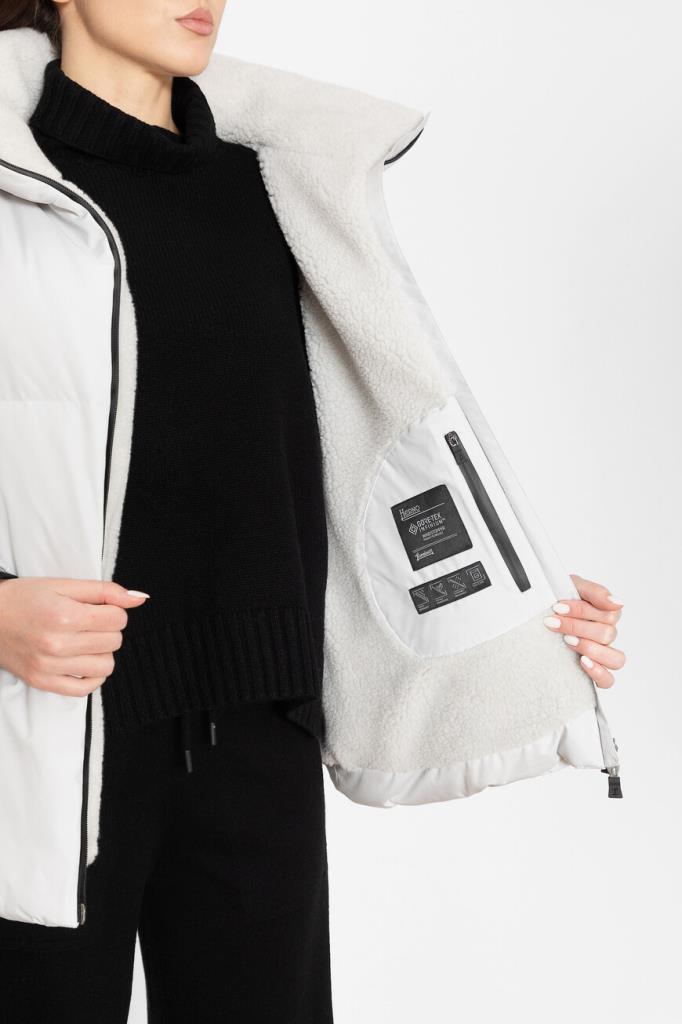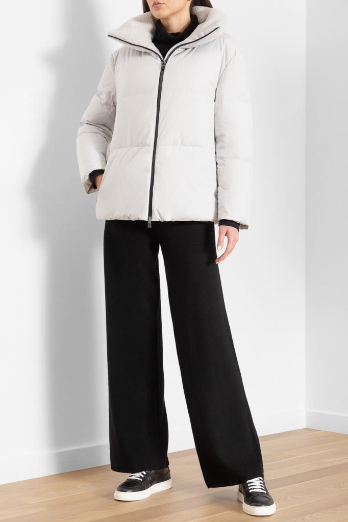 Короткий пуховик Herno из водонепроницаемой ткани. Модель из коллекции Laminar светло-серого цвета интересна высоким объемным воротником. Однотонная стеганая куртка обладает ветрозащитными свойствами, сохраняя комфортный микроклимат внутри. Модель проста в хранении и уходе: она хорошо переносит машинную стирку и легко помещается в компактный чехол.