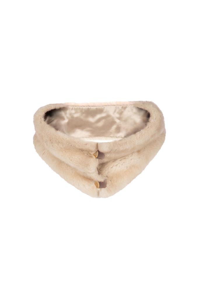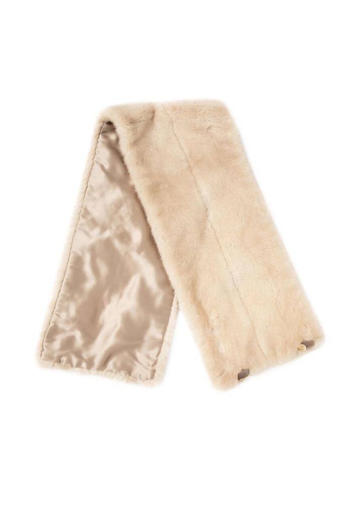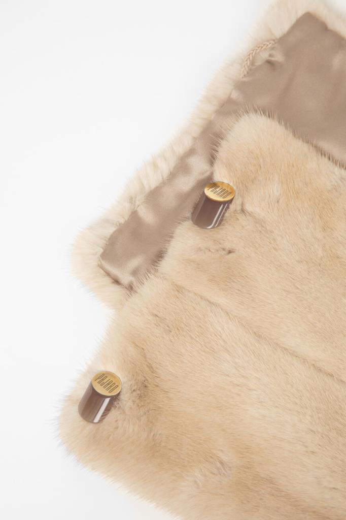 Роскошный и элегантный женский пояс VINICIO PAJARO из мягкого натурального меха скандинавской норки изысканного бежевого оттенка эксклюзивной выделки. Однородная мягкая поверхность изделия прошита и обработана при помощи ручных технологий. Лаконичная модель с удобной застёжкой-креплением на две крупные брендированные пуговицы с плетёными петельками. Фишка изделия: слегка контрастная подкладка из мягкого гладкого шёлка.