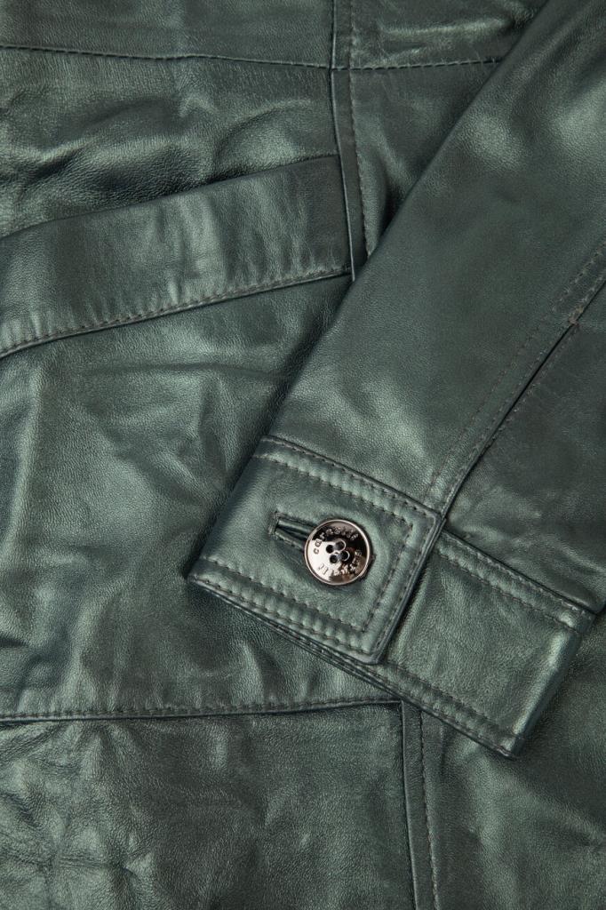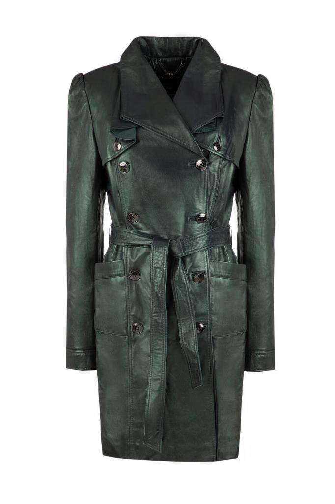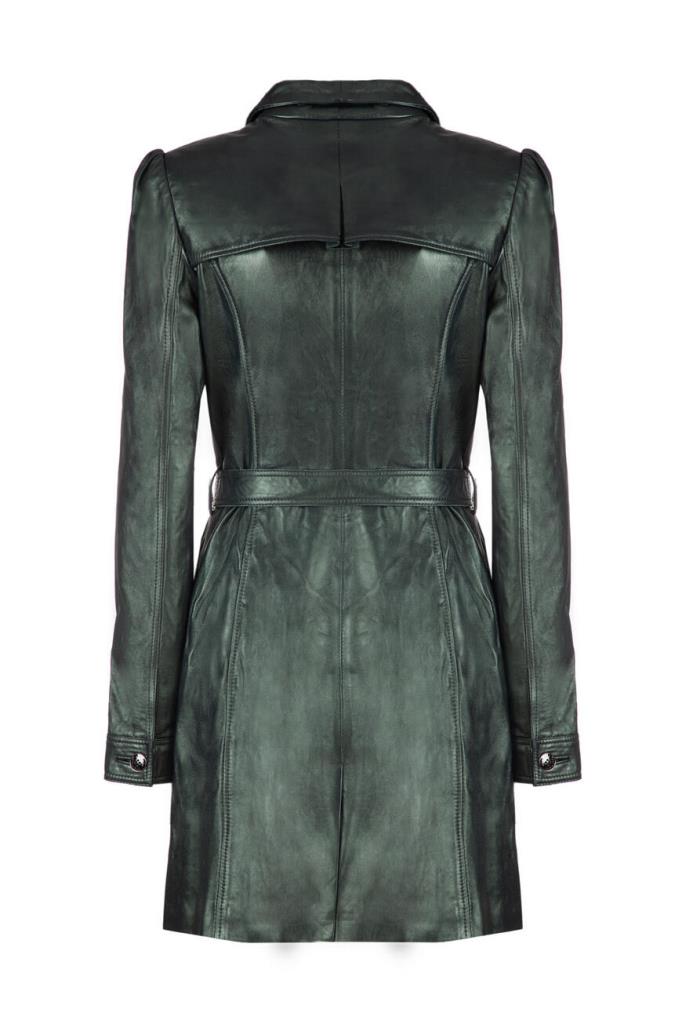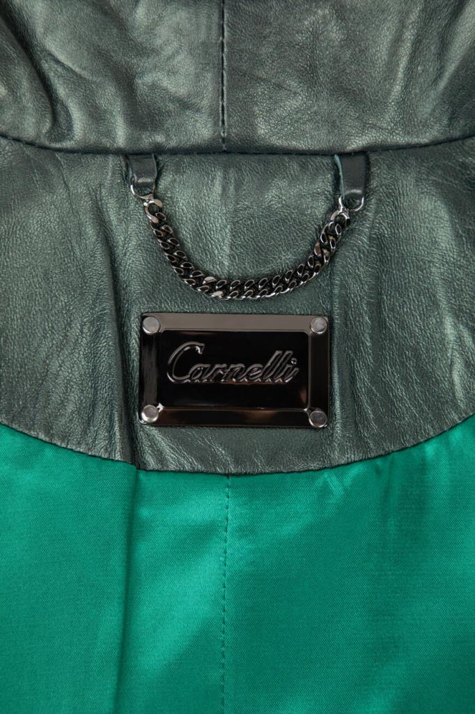 Эффектный женский плащ CARNELLI из мягкой натуральной овчины изысканного зелёного оттенка с лёгким глянцевым отливом.