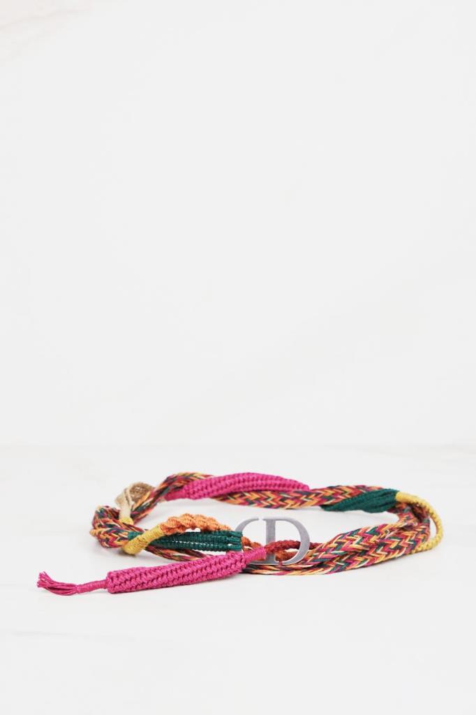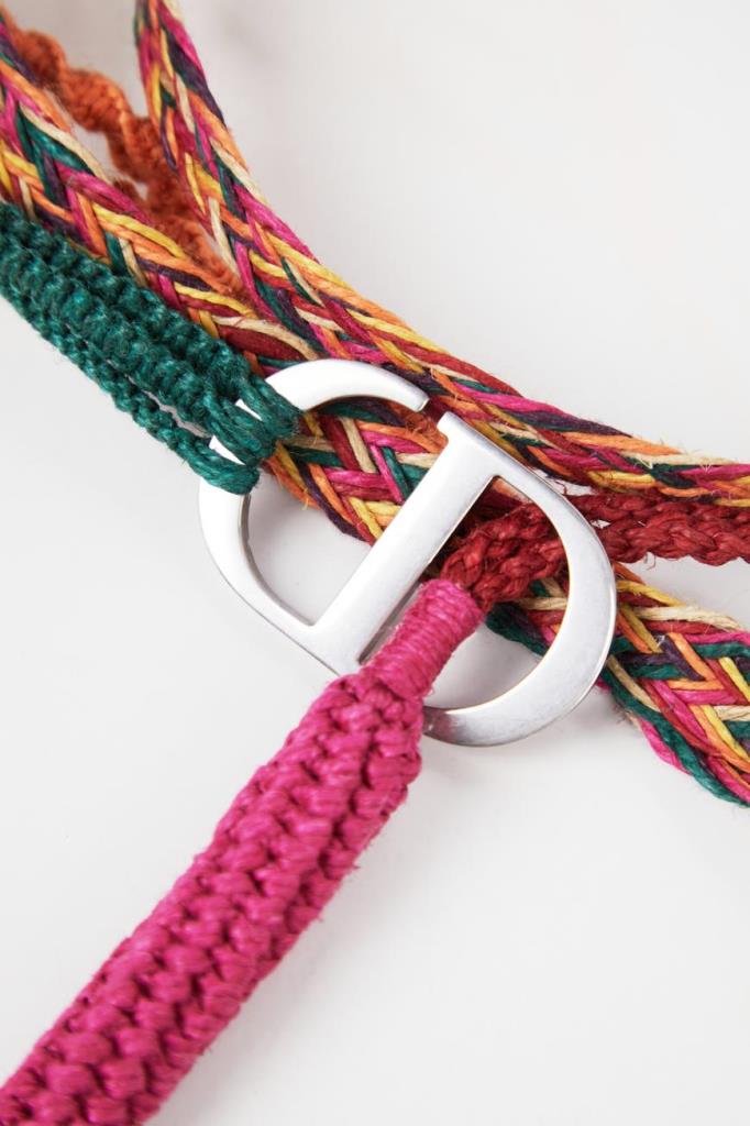 Роскошный разноцветный женский ремень Diornatural, сплетенный вручную из льняных нитей и дополненный крупной фирменной пряжкой "CD" 30 Montaigne, выполненной из металла с отделкой цвета состаренного серебра. В сочетании с юбкой, платьем или брюками этот ремень сделает акцент на талии и подчеркнёт силуэт.
