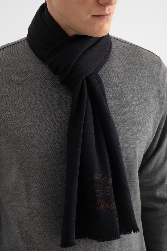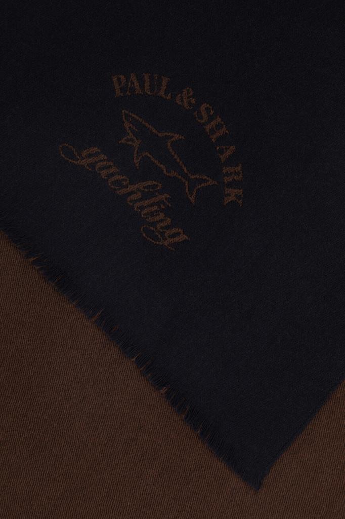 Двусторонний шарф из натуральной шерсти от бренда Paul&Shark. За универсальность отвечают сдержанная гамма из тёмно-синего и древесного оттенков и минималистичный декор. Аксессуар будет гармонично смотреться с пуховиками из той же коллекции.