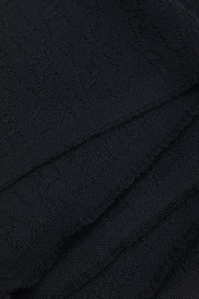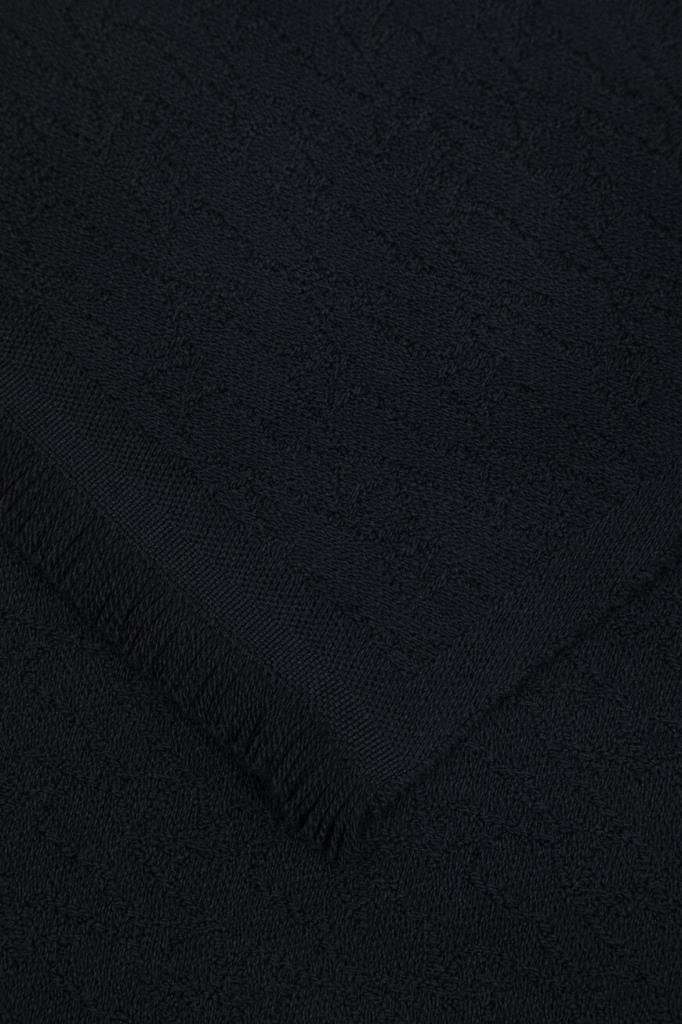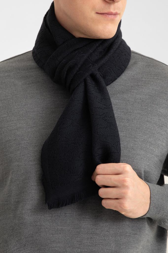 Тёмно-синий шарф с бахромой от бренда Paul&Shark. Изделие выполнено из натуральной шерсти virgin и украшено культовым мотивом с повторяющимся изображением акулы в тон.