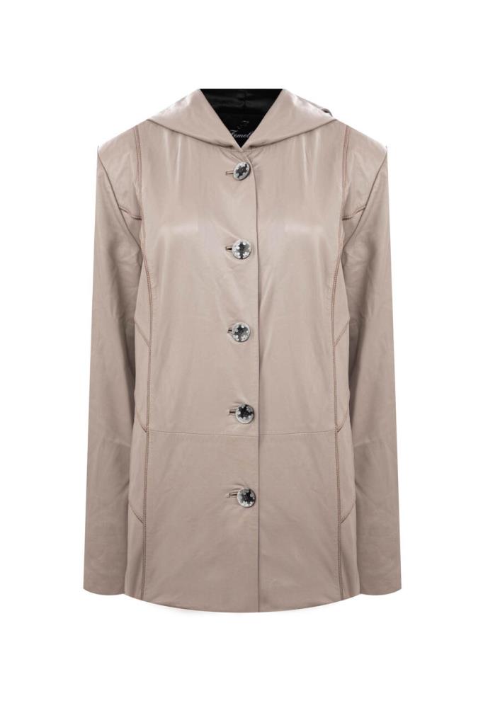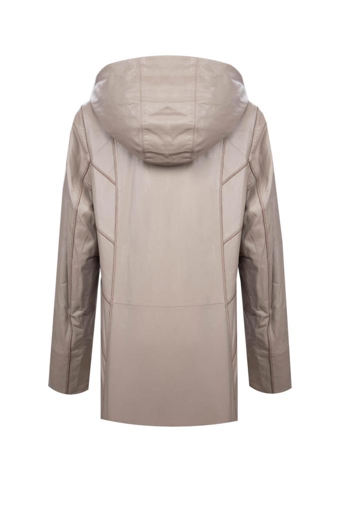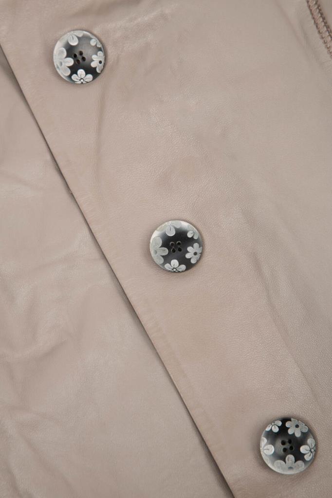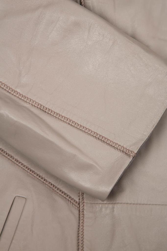 Стильная женская куртка FEMELLA из мягкой натуральной кожи телёнка универсального кремово-бежевого оттенка.