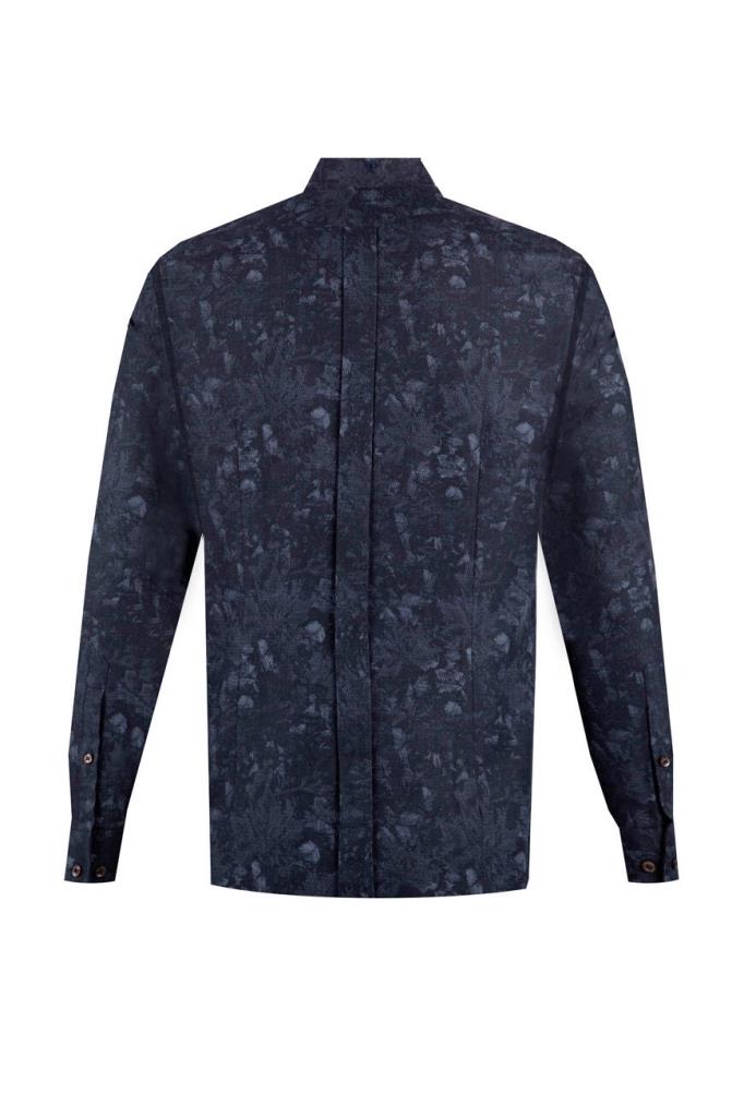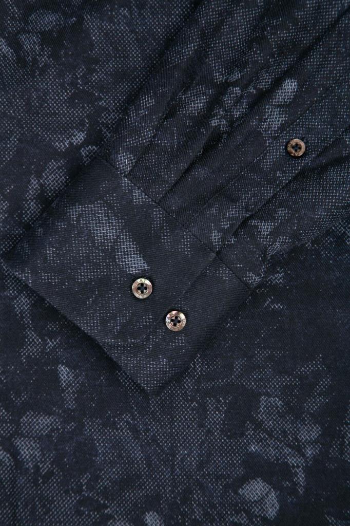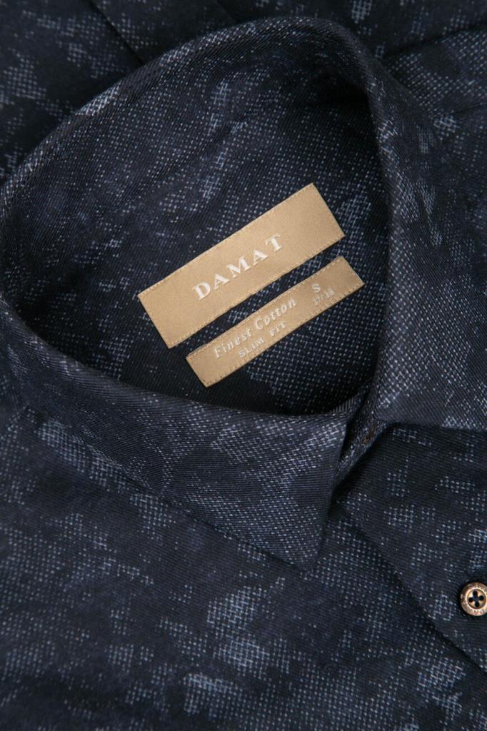 Роскошная мужская рубашка Damat из мягкого фактурного хлопкового трикотажа тёмно-синего цвета с оригинальным неоднородным контрастным узором по всей поверхности изделия.