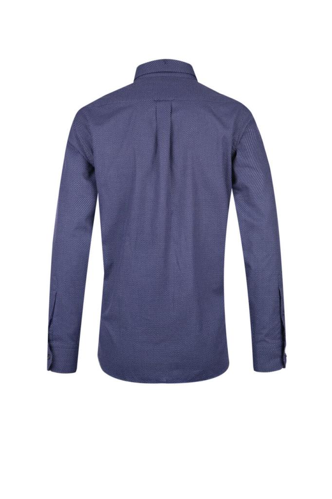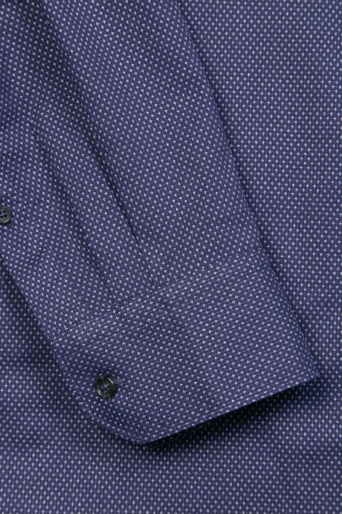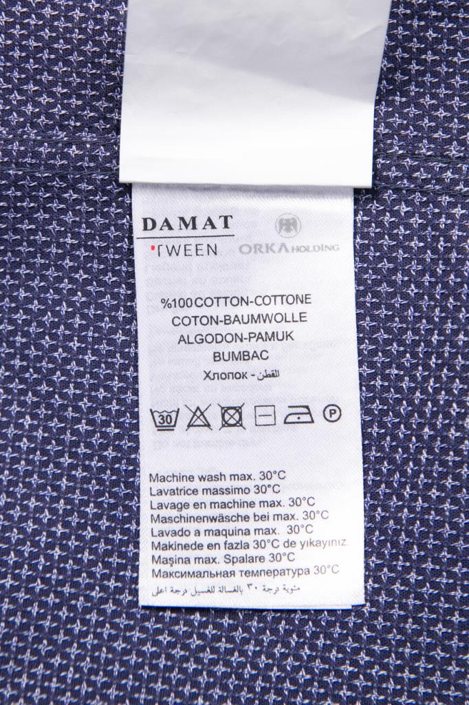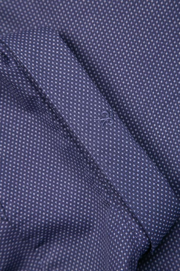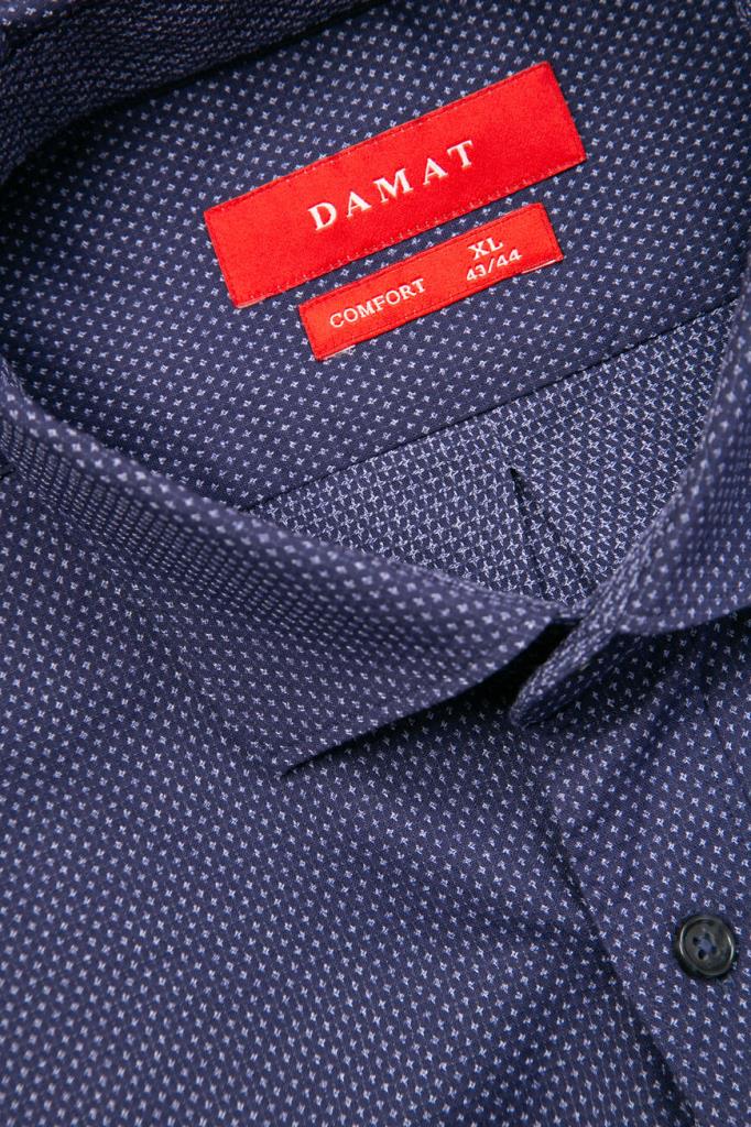 Стильная мужская рубашка DAMAT из мягкого хлопкового трикотажа тёмно-синего цвета с оригинальным контрастным геометрическим узором ромбами по всей поверхности изделия.