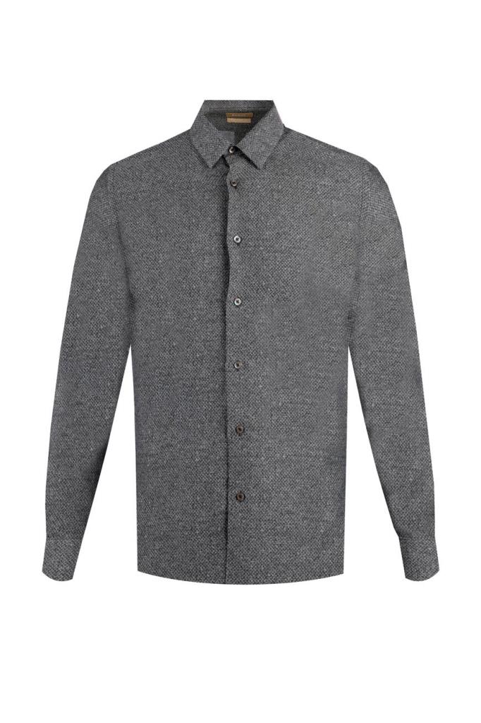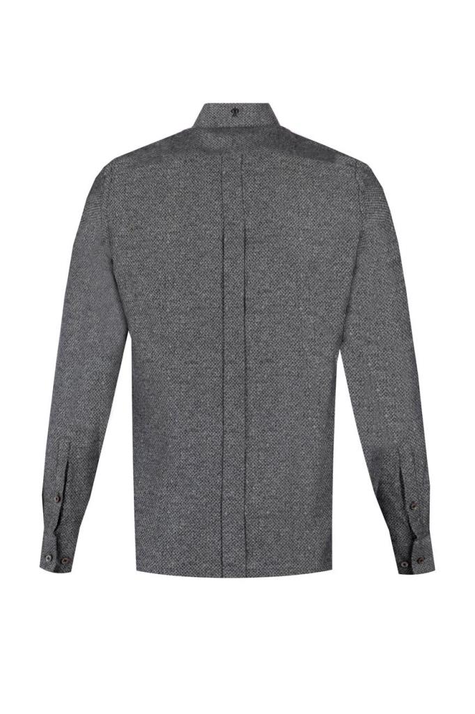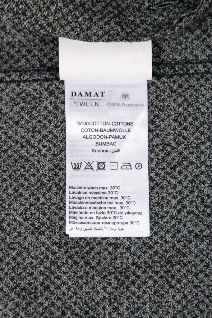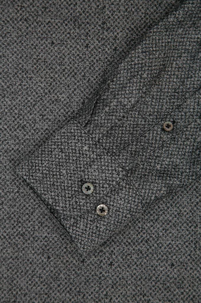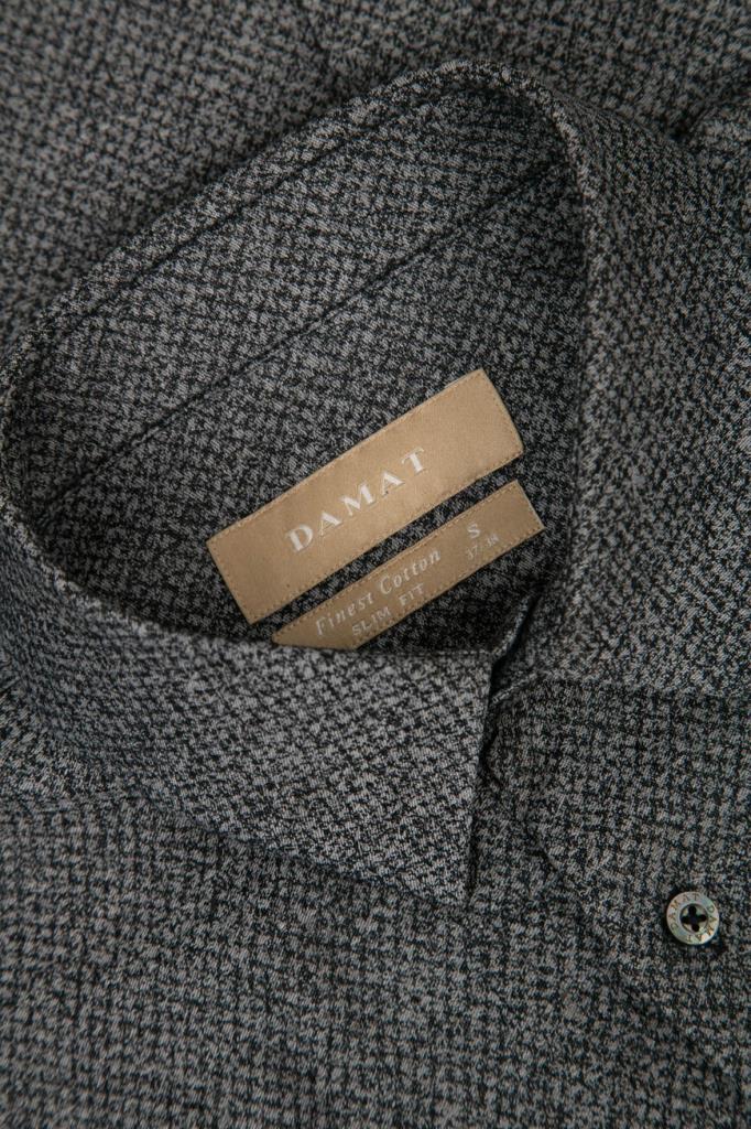Стильная мужская рубашка DAMAT из мягкого хлопкового трикотажа серого цвета с оригинальным контрастным чёрным меланжевым узором по всей поверхности изделия.