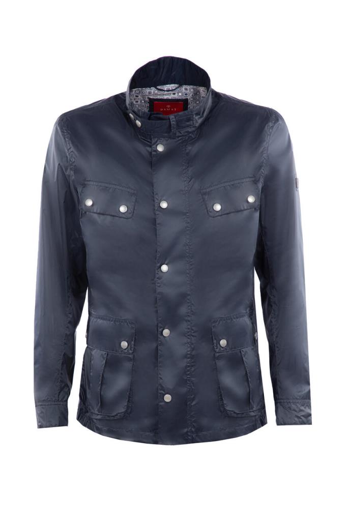 Стильная мужская куртка-ветровка DAMAT из прочного синтетического износостойкого материала универсального тёмно-синего цвета.