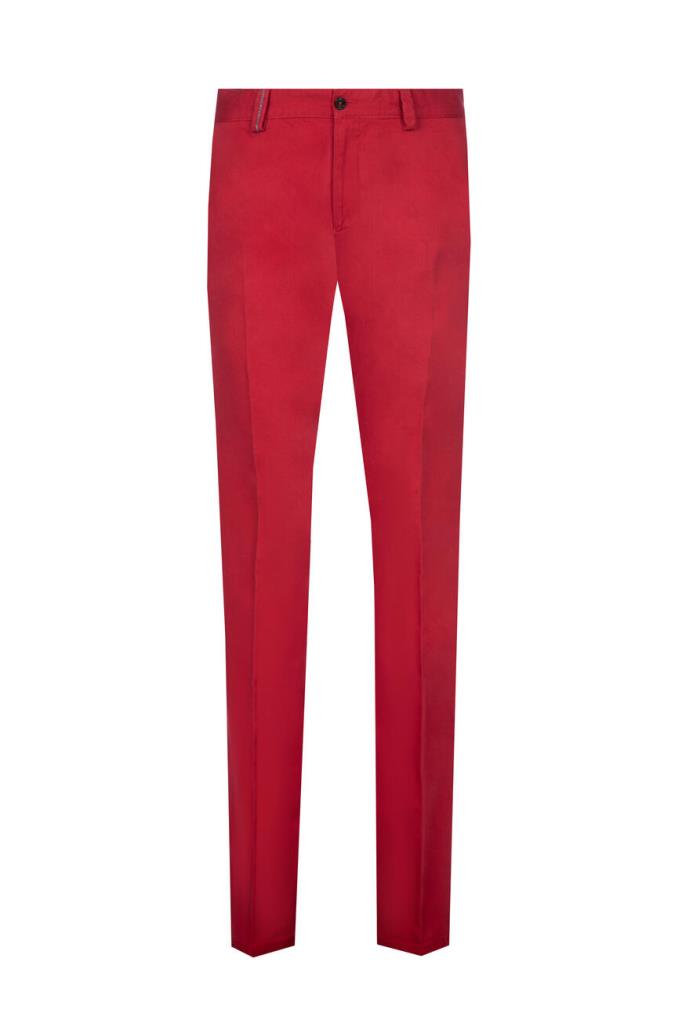 Стильные мужские брюки DAMAT из мягкого эластичного хлопкового трикотажа изысканного насыщенного ярко-красного оттенка.