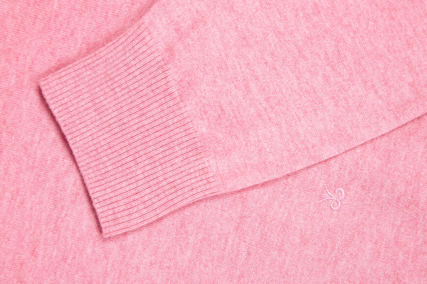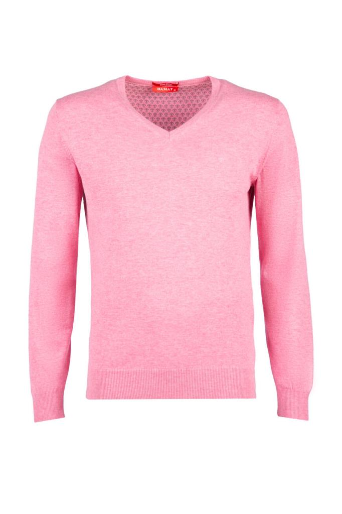 Стильный мужской джемпер DAMAT из мягкого трикотажа на основе хлопка, прочного фирменного нейлона, натуральной шерсти и гладкого шёлка изысканного розового оттенка с заметным меланжем.