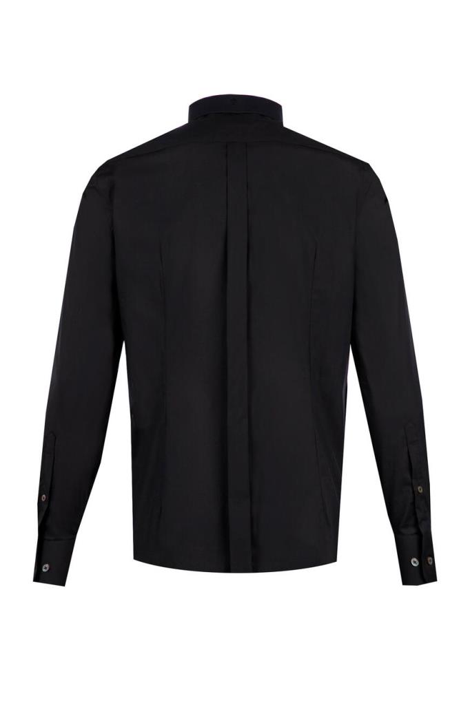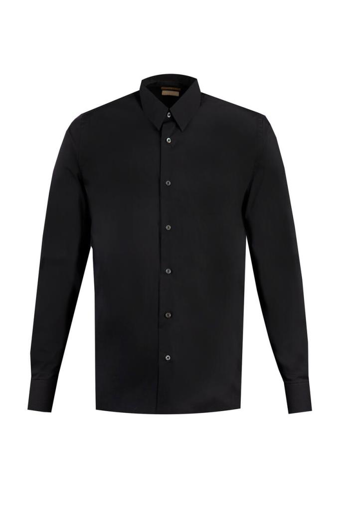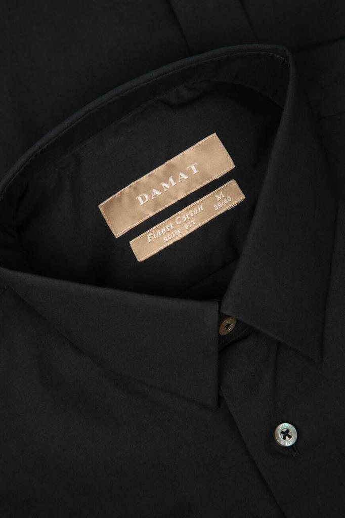Стильная мужская рубашка DAMAT из мягкого эластичного трикотажа на основе хлопка и прочного фирменного нейлона универсального чёрного цвета.