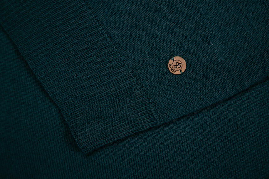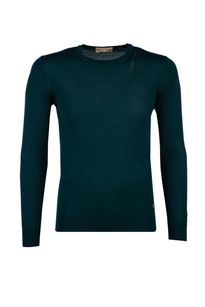Стильный мужской джемпер DAMAT из мягкой натуральной шерсти изысканного насыщенного изумрудного оттенка.
