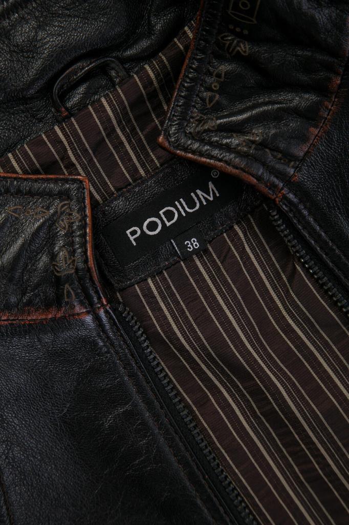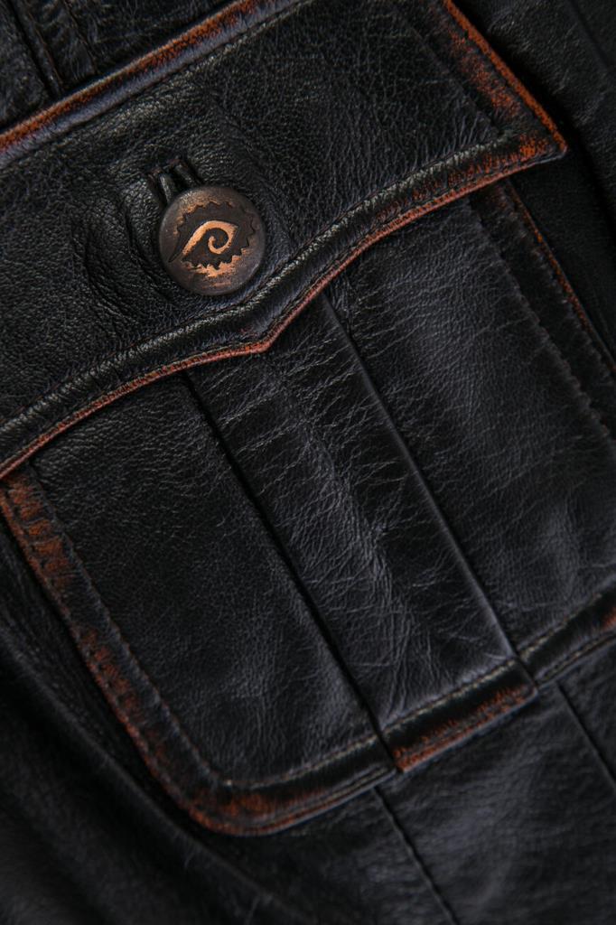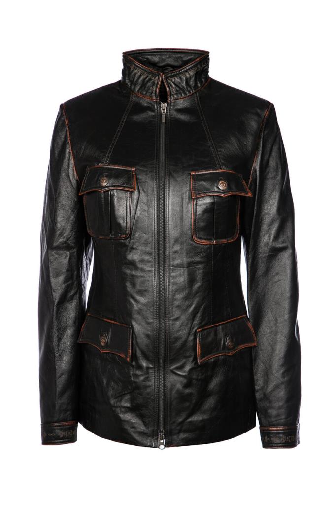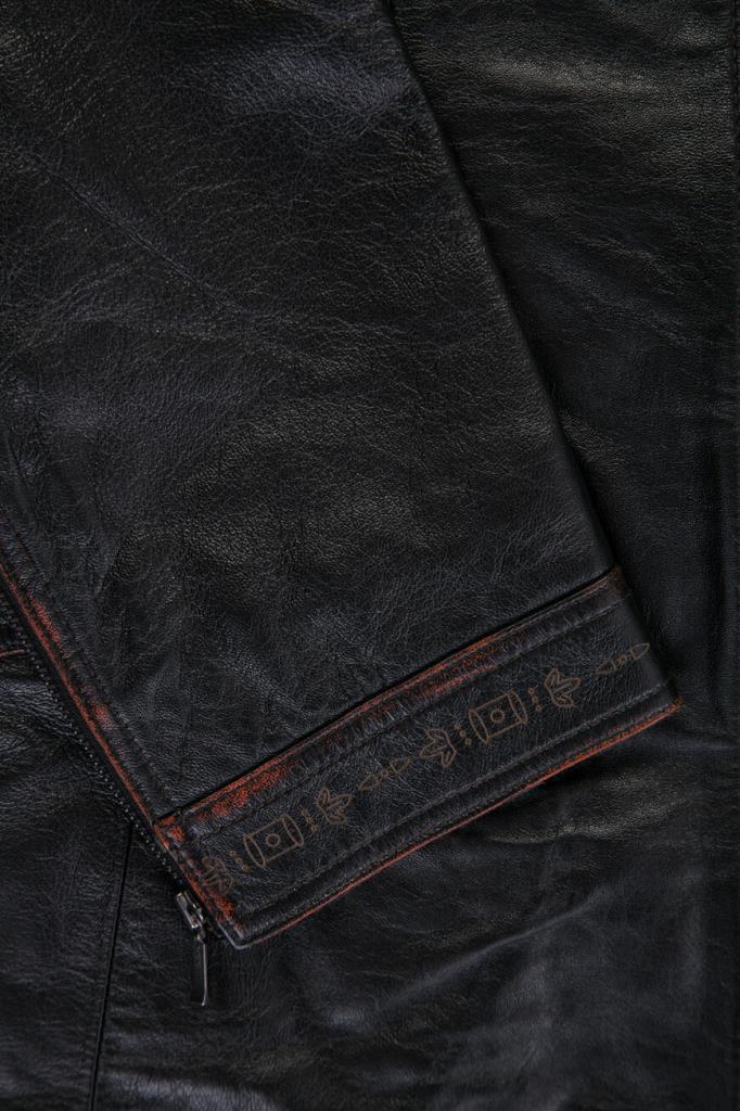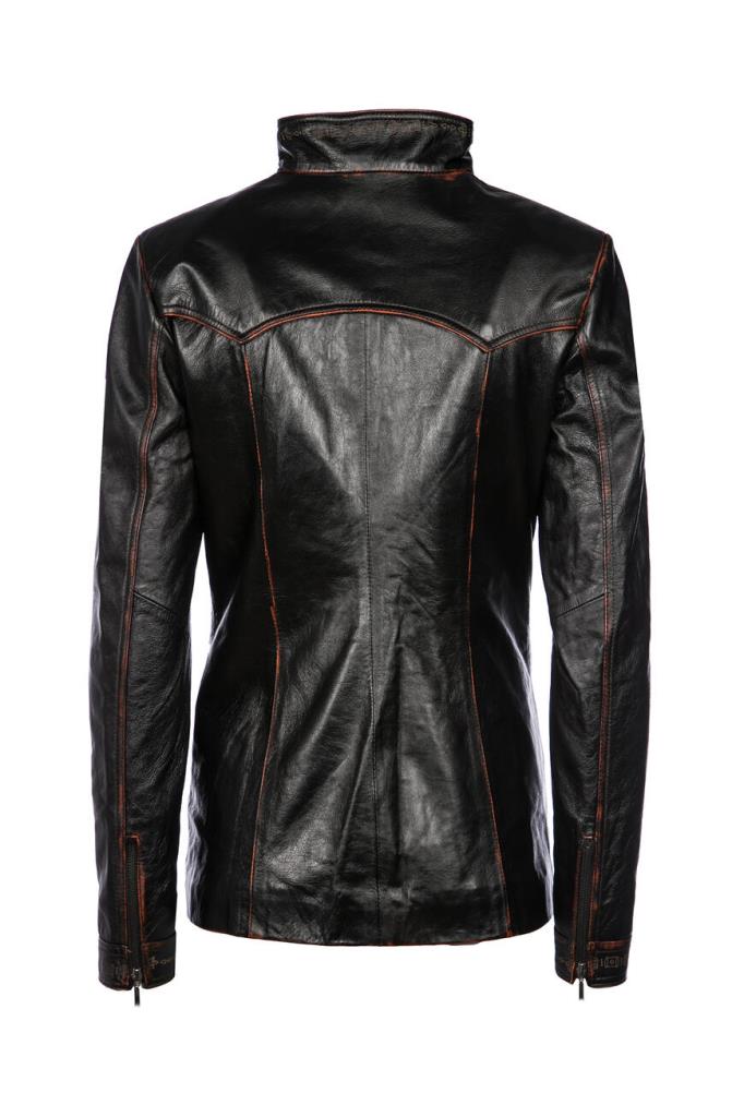 Чёрная куртка Diego Mazzi из натуральной овчины. Модель отличает оранжевая окантовка-патина.