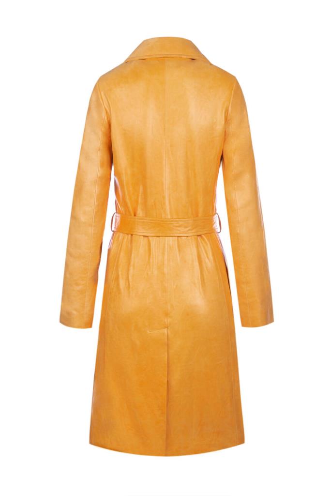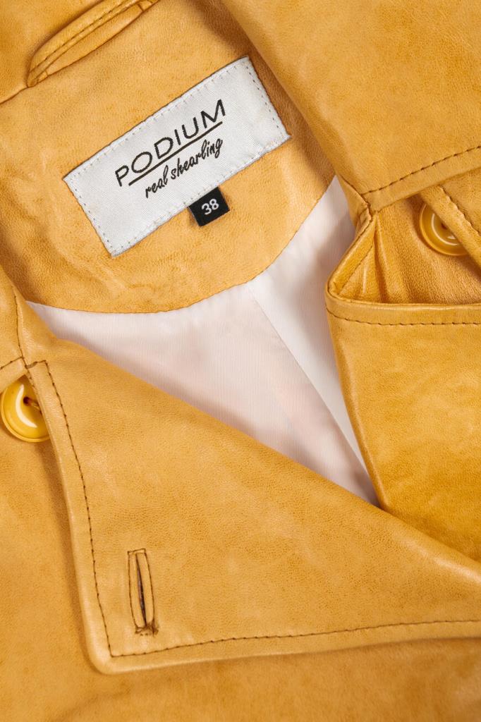 Роскошное женское пальто-френч от бренда Podium выполнено из мягкой натуральной овчины изысканного насыщенного жёлтого оттенка.