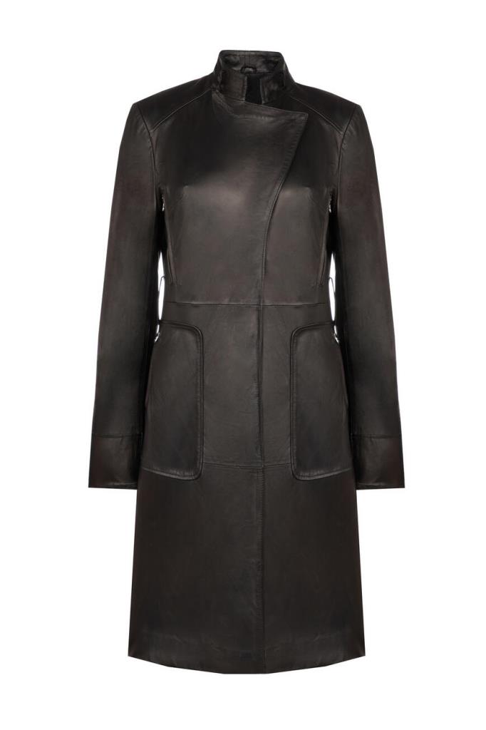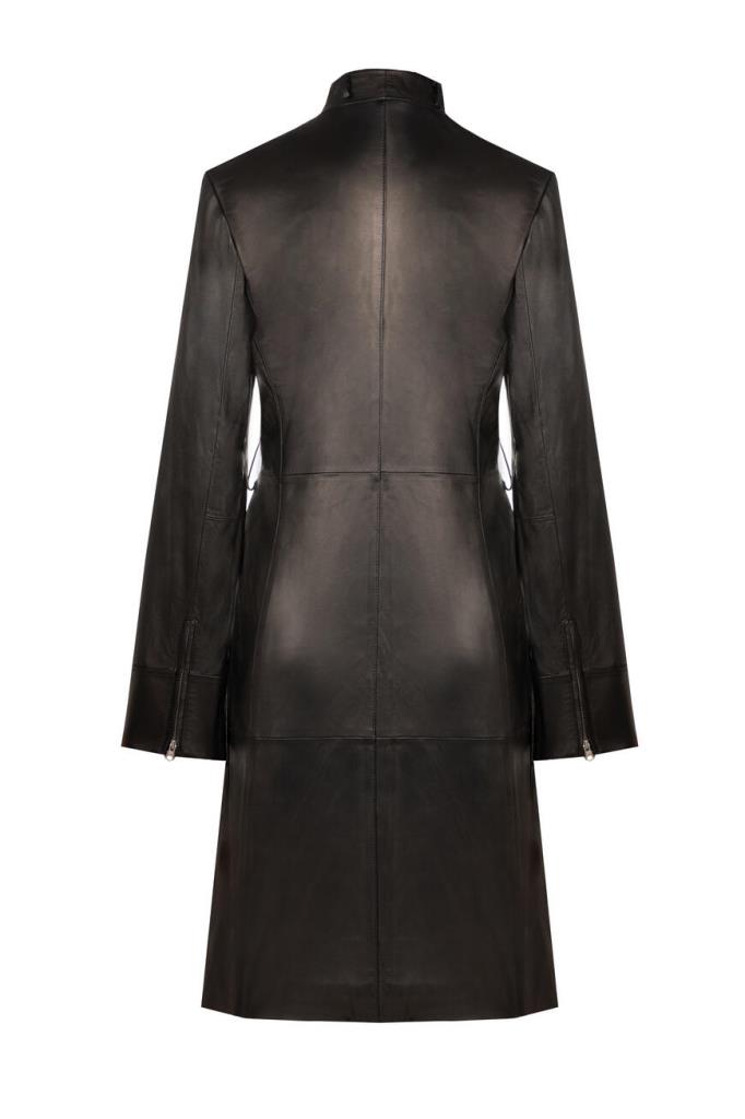Стильный женский плащ Podium из мягкой натуральной овчины универсального чёрного цвета.