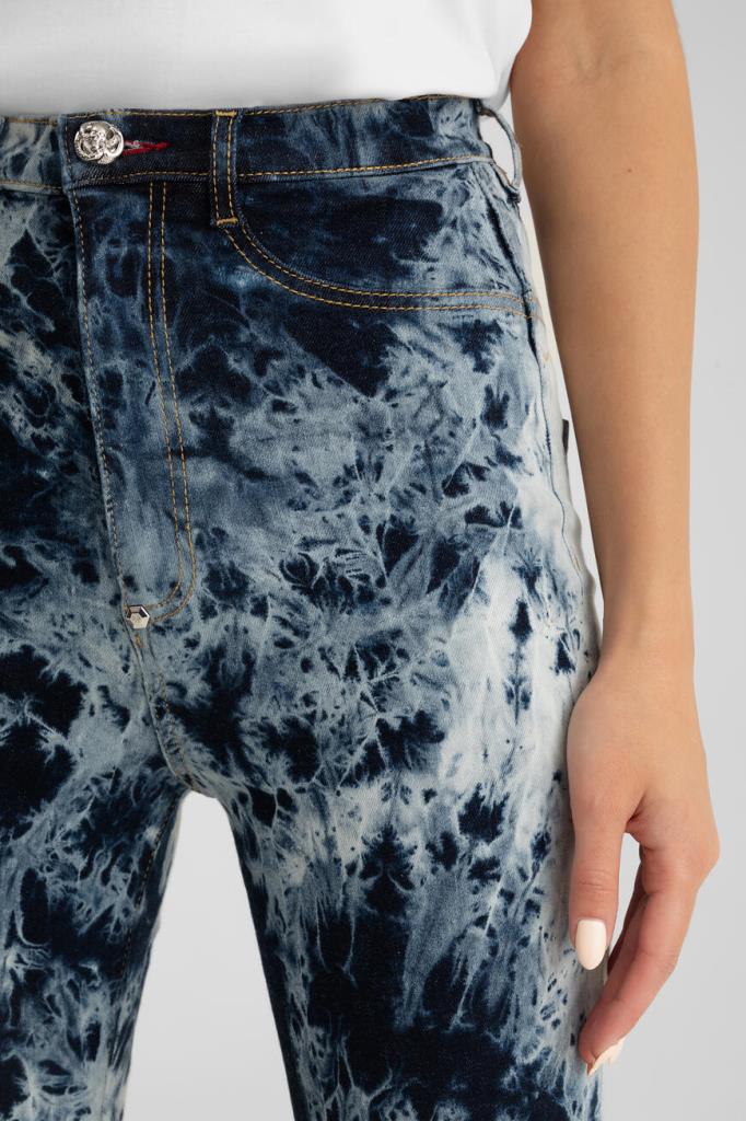 Стильные женские джеггинсы Philipp Plein из мягкого хлопкового денима-стрейч изысканного голубого оттенка с эффектными дизайнерскими потёртостями и разводами. Трендовая модель ультраоблегающего кроя, высокой посадки, с плотным поясом со шлевками под ремень, удобной застёжкой на молнию и крупную фирменную металлическую пуговицу с контрастной ярко-красной петелькой, оранжевой прострочкой по всей поверхности изделия и традиционными джинсовыми карманами. На поясе сзади красуется контрастная коричневая кожаная нашивка с фирменным логотипом бренда и тремя нитями в цвет итальянского флага сбоку.