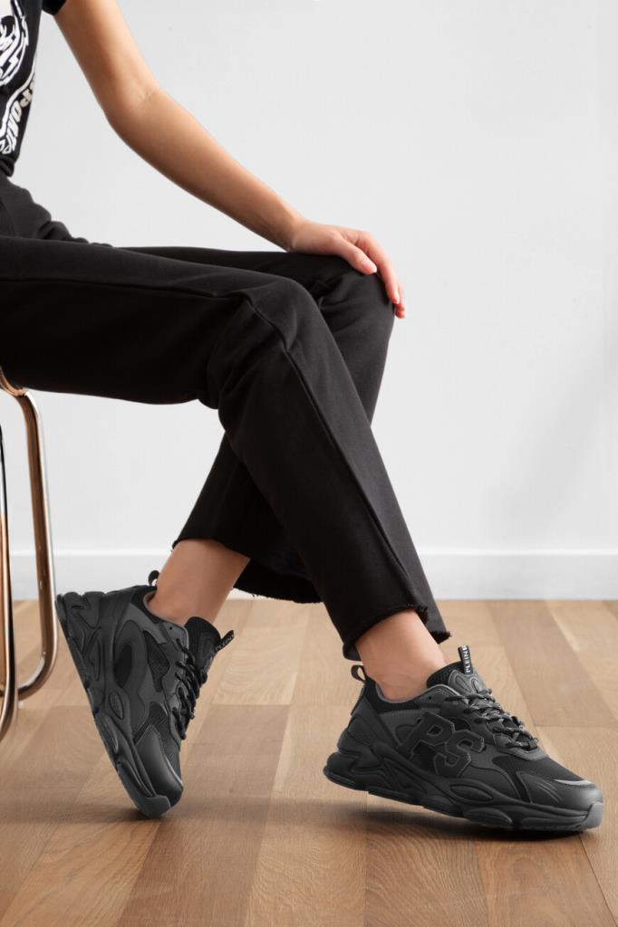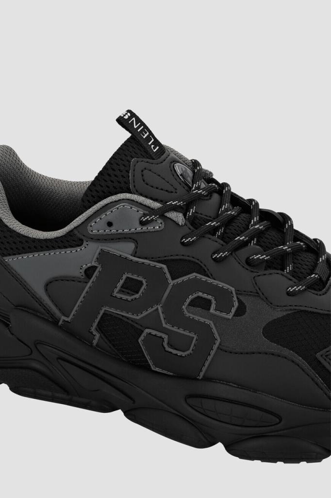 Сникеры LO-TOP с широкой колодкой от бренда PLEIN Sport. Эта пара унисекс родилась благодаря творческой работе лаборатории Plein Sport Lab, нацеленной на сочетание передовых технологий и уникального и выдающегося дизайна. Изделие выполнено из дышащего сетчатого материала чёрного цвета и укреплено однородными вставками в чёрно-серой гамме. Отличительными особенностями модели являются брендированная вставка на язычке, принт в виде следов от когтей тигра на носке, крупная аббревиатура «PS» с серым кантом на боковинах и рельефная вставка с логотипом на заднике.
