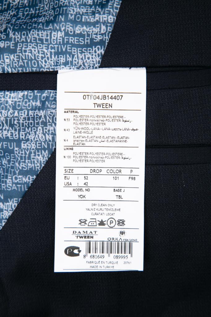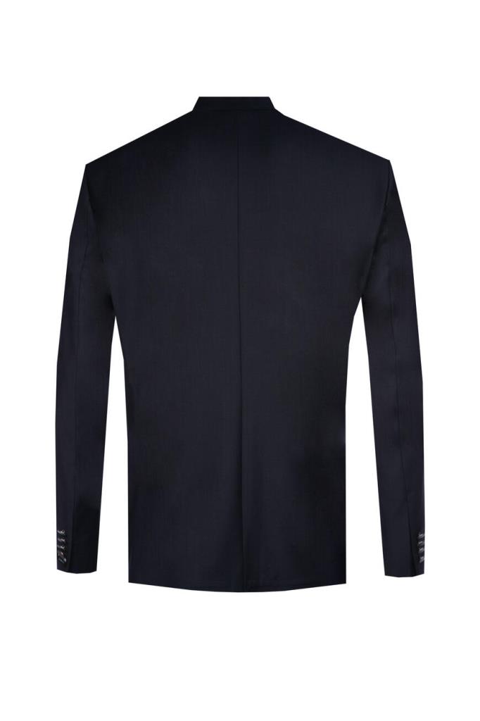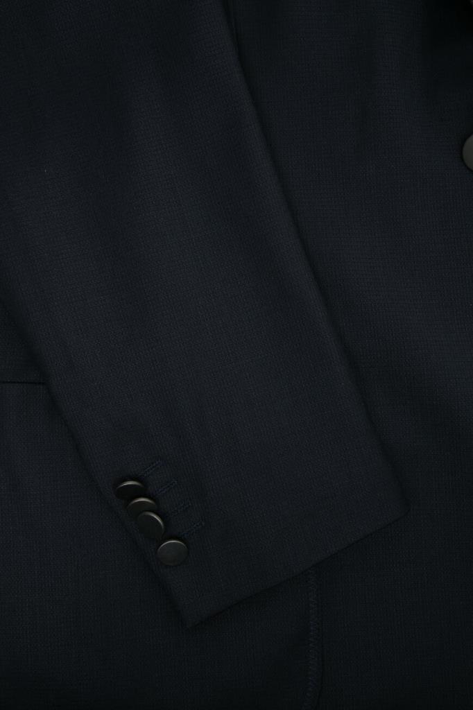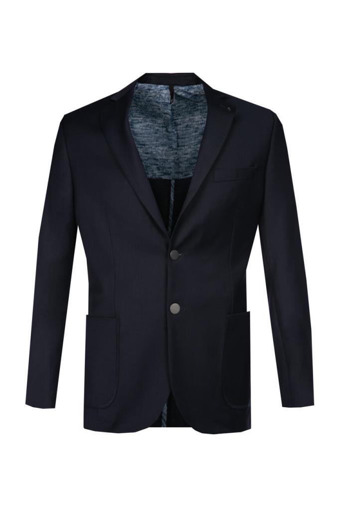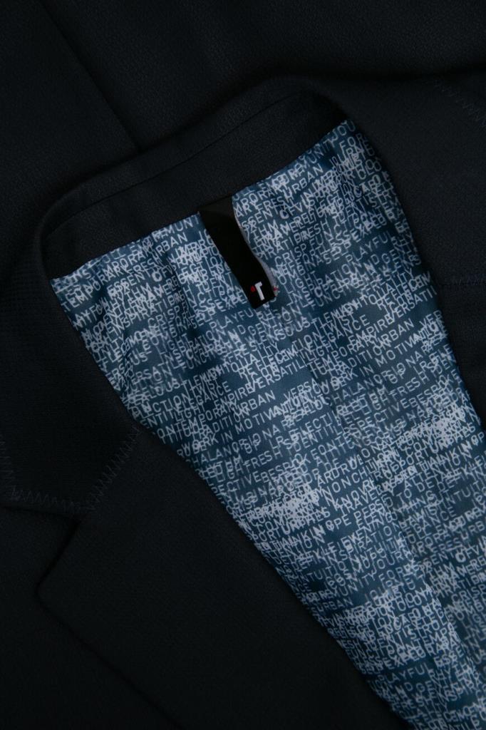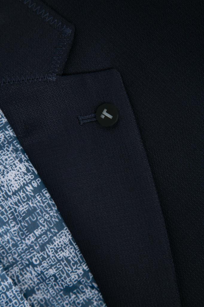 Пиджак TWEEN из эластичного трикотажа на основе шерсти и полиэфира. Изделие тёмно-синего цвета дополнено фактурным геометрическим узором в клетку в тон.