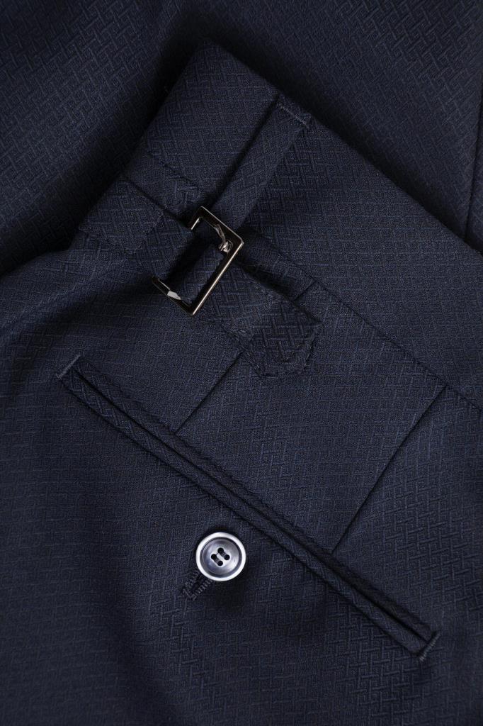 Тёмно-синие брюки TWEEN с фактурным геометрическим узором ромбами. Для создания модели выбран мягкий эластичный трикотаж на основе натуральной шерсти, прочного износостойкого материла и вискозного волокна.
