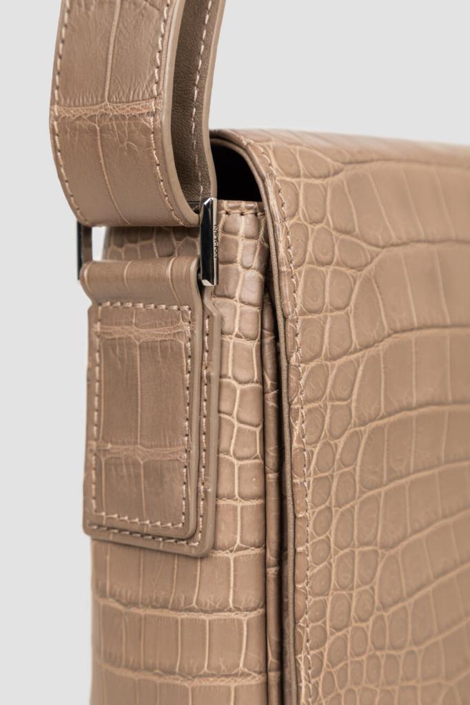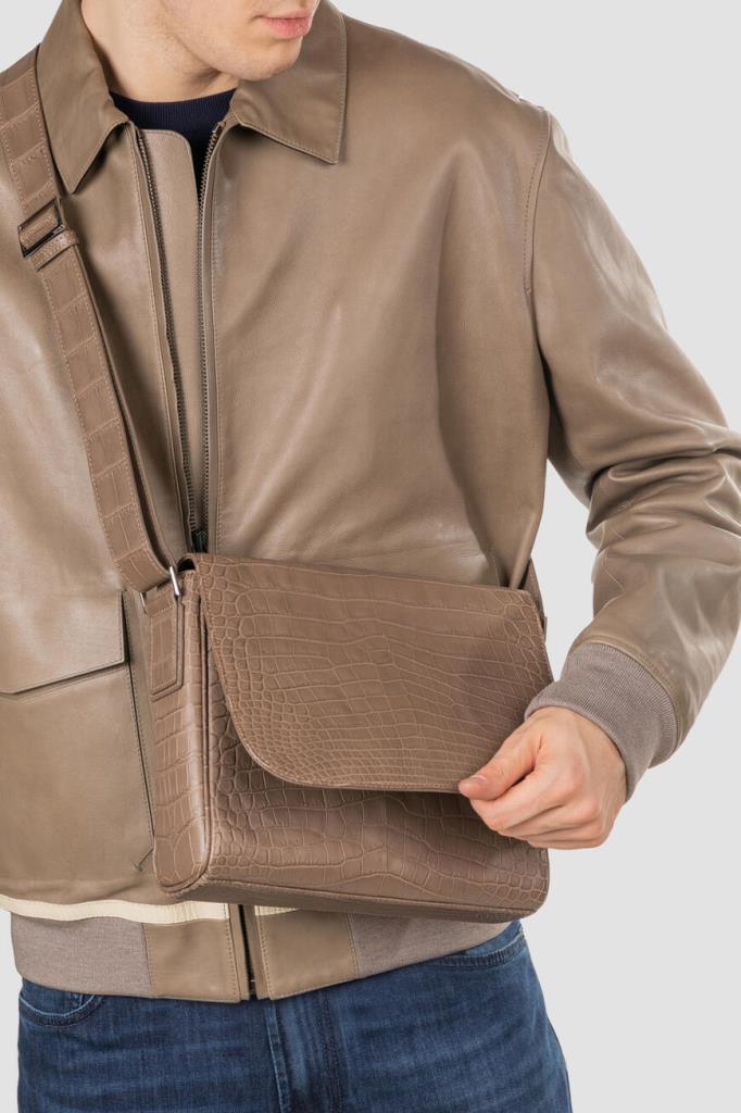 Стильная сумка-мессенджер ручной работы от Bardini. Эффектная вместительная модель выполнена из матовой высококачественной кожи крокодила универсального бежевого оттенка. Классический дизайн подчёркивает благородный цвет и уникальный рисунок кожи.