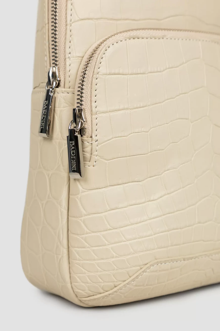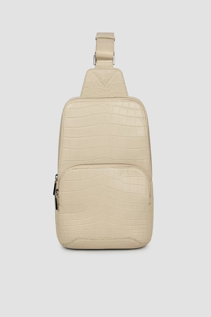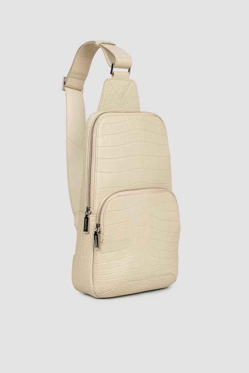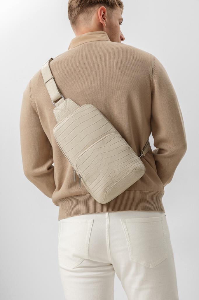 Стильная сумка-слинг ручной работы от Bardini. Вместительная модель выполнена из матовой высококачественной кожи крокодила универсального белого цвета. Классический аксессуар отличается особой прочностью и долговечностью, а дизайн подчёркивает благородный цвет и уникальный рисунок кожи.