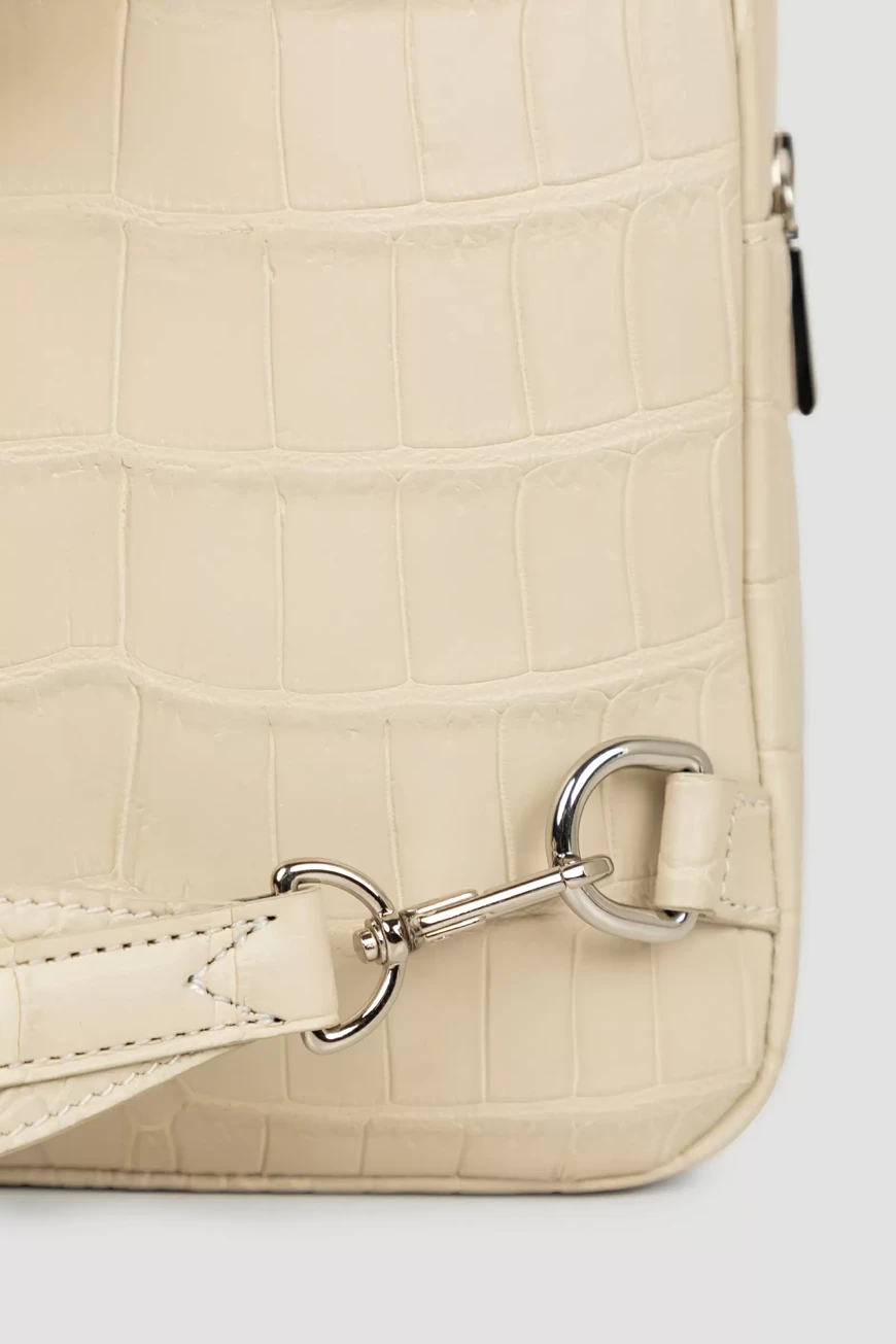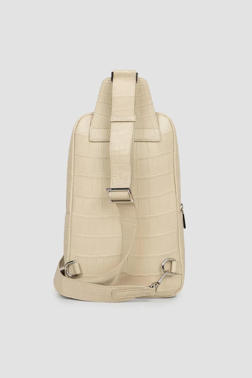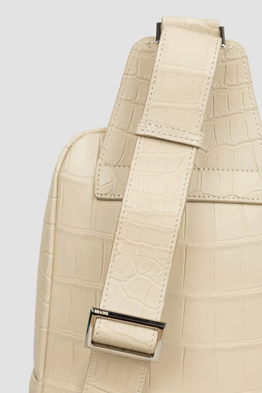 Стильная сумка-слинг ручной работы от Bardini. Вместительная модель выполнена из матовой высококачественной кожи крокодила универсального белого цвета. Классический аксессуар отличается особой прочностью и долговечностью, а дизайн подчёркивает благородный цвет и уникальный рисунок кожи.
