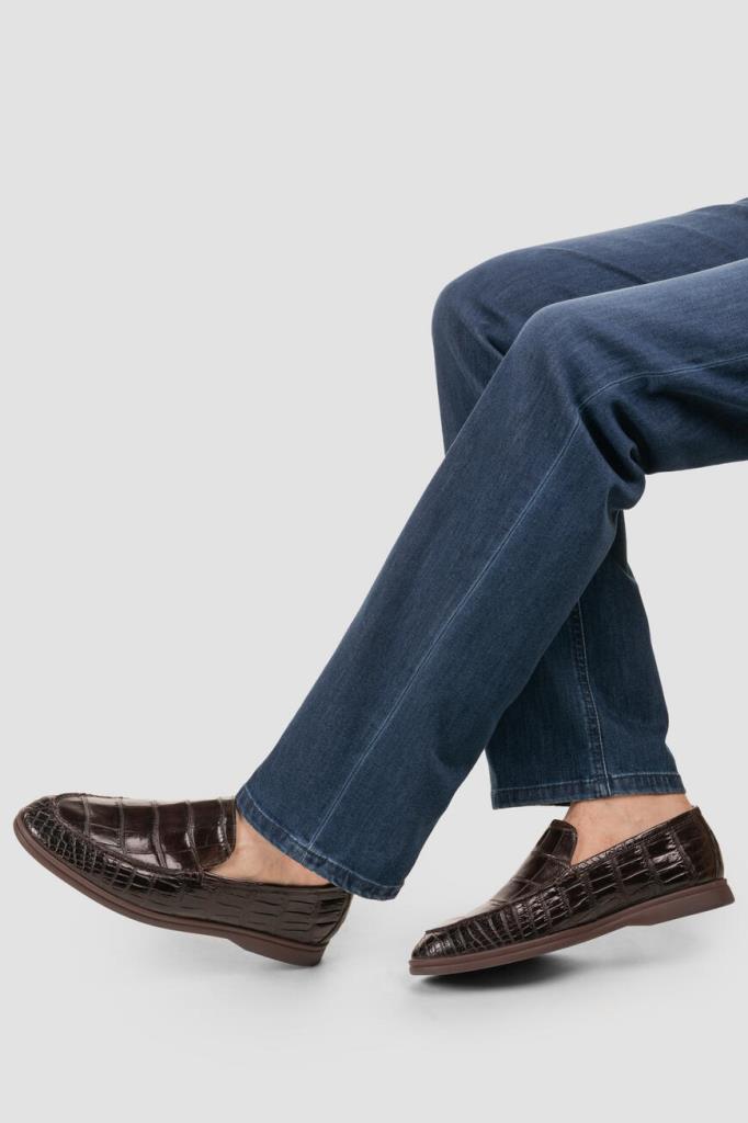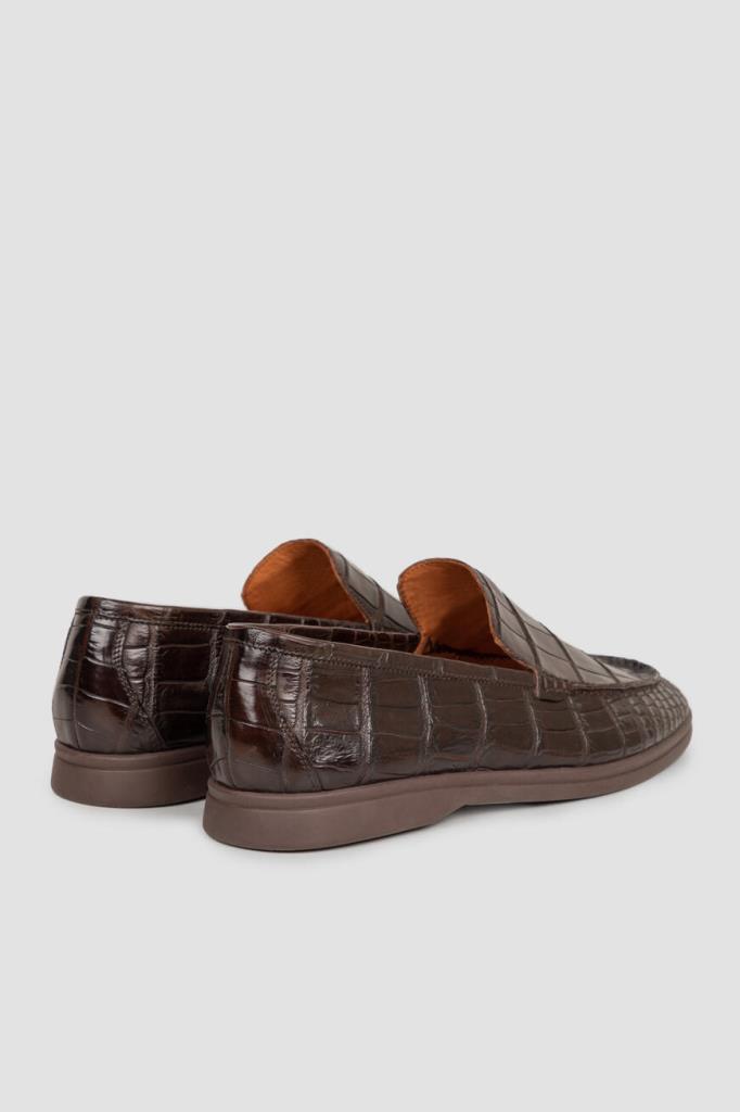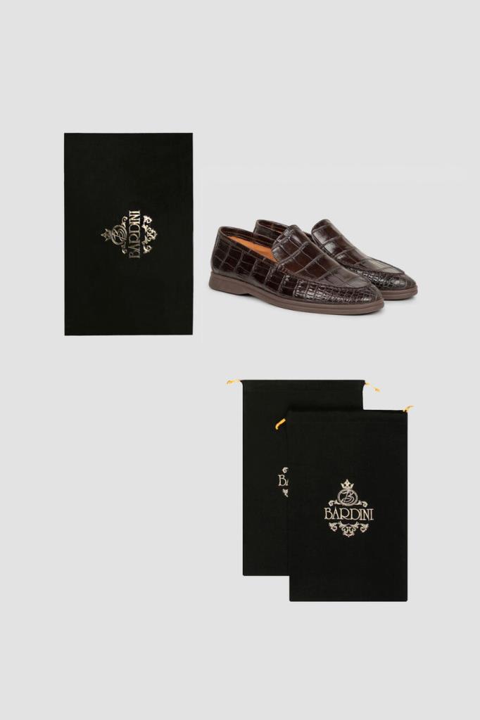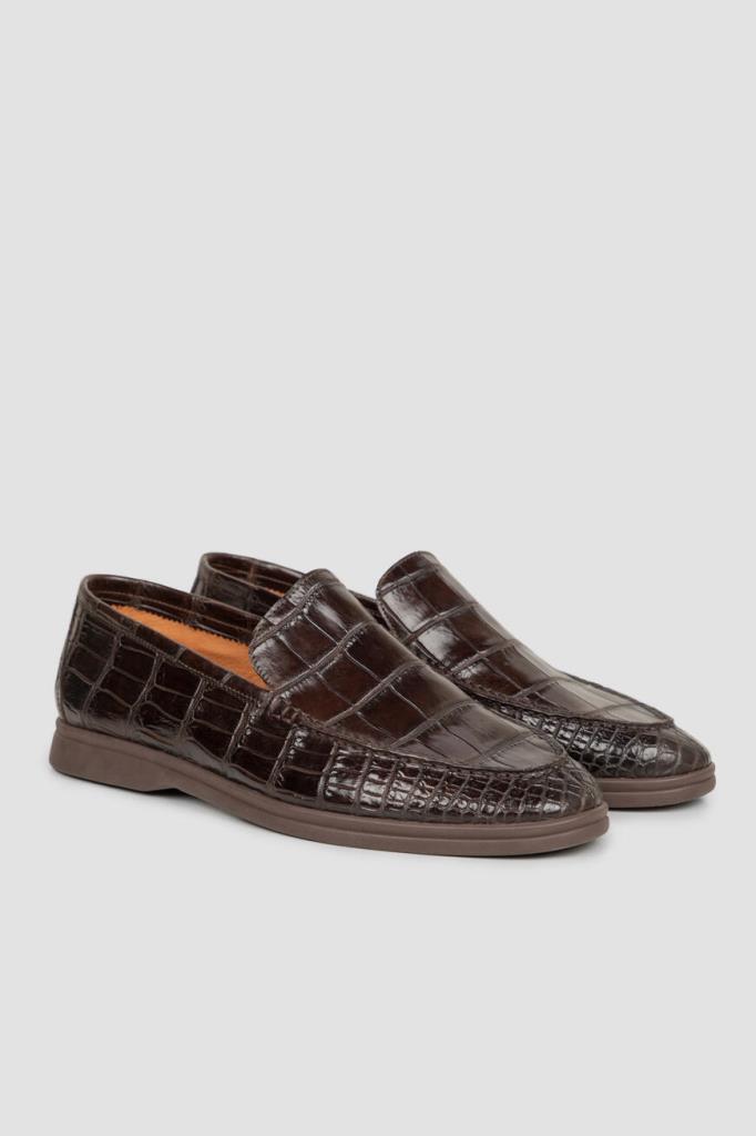 Стильные лоферы ручной работы от Bardini. Лёгкая и комфортная модель выполнена из натуральной кожи нильского крокодила изысканного шоколадно-коричневого оттенка, тщательно отобранной вручную. Уникальный экзотический рисунок материала подчёркивает элегантный силуэт. Фишка изделия: подошва пришита к верхней кожаной части лоферов швом Гудиер, обеспечивающим максимальную долговечность этому соединению.
