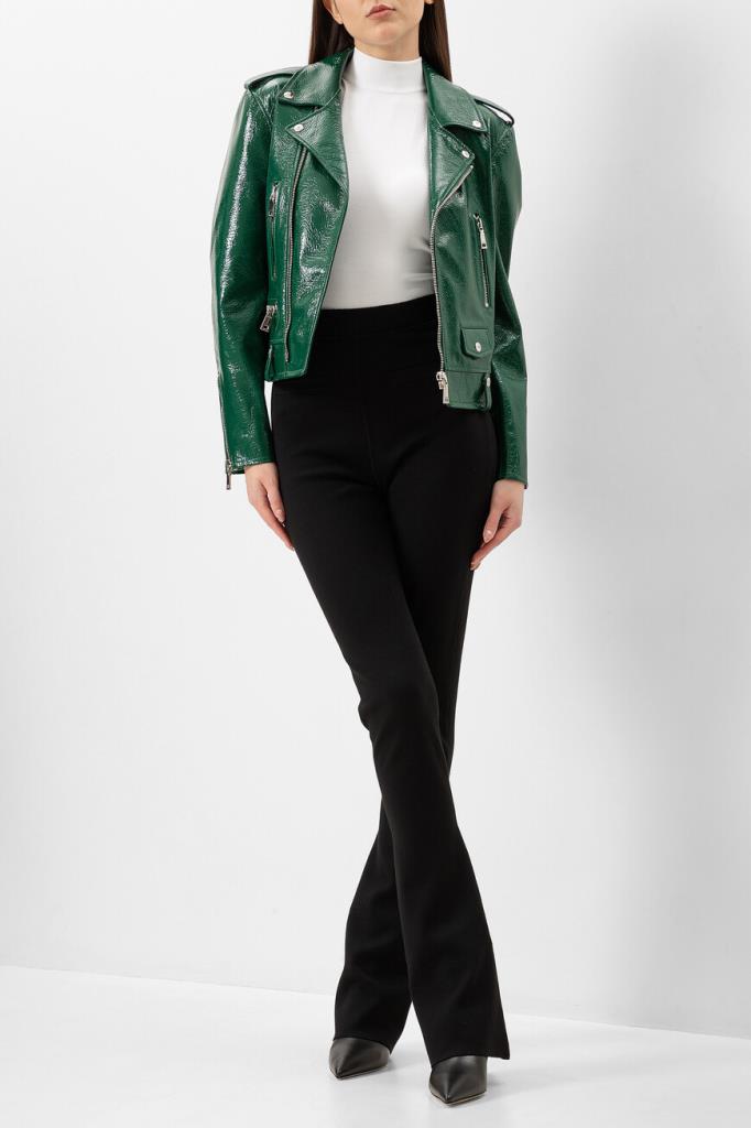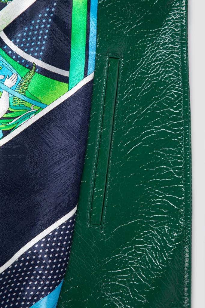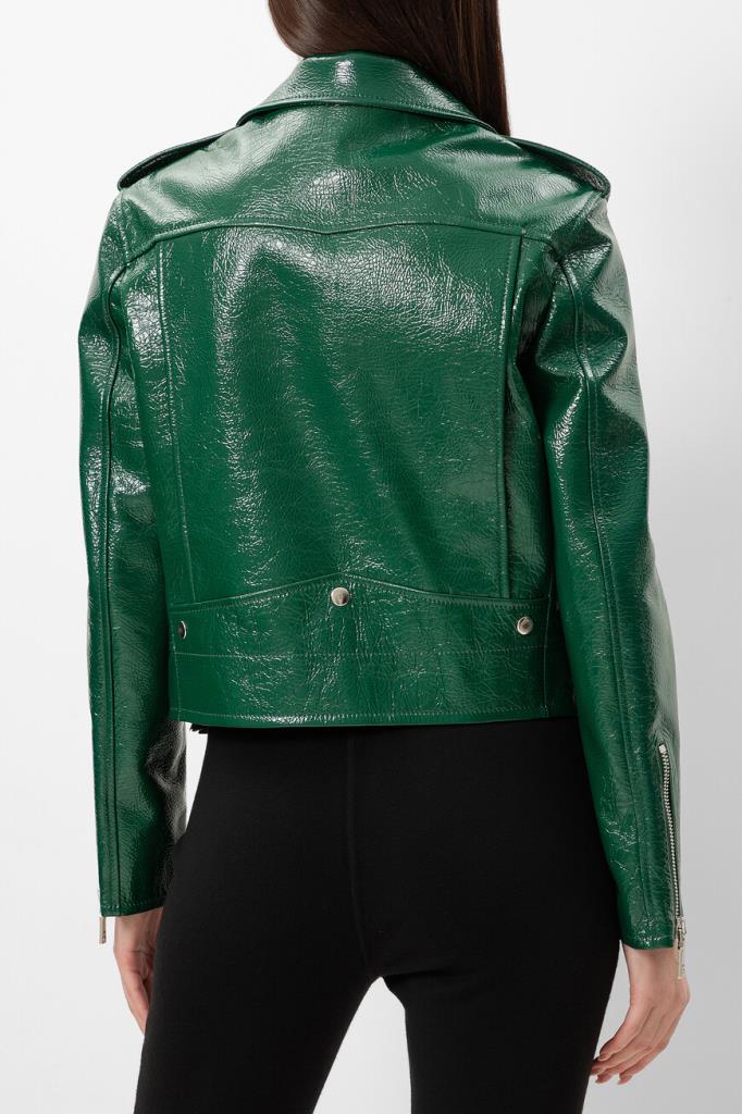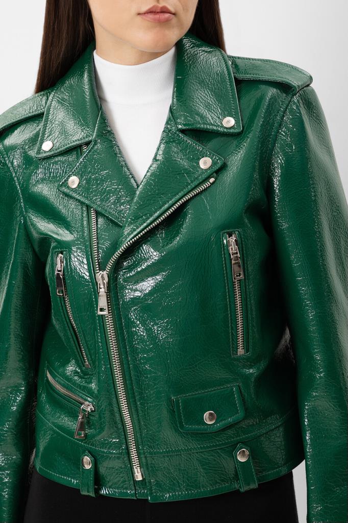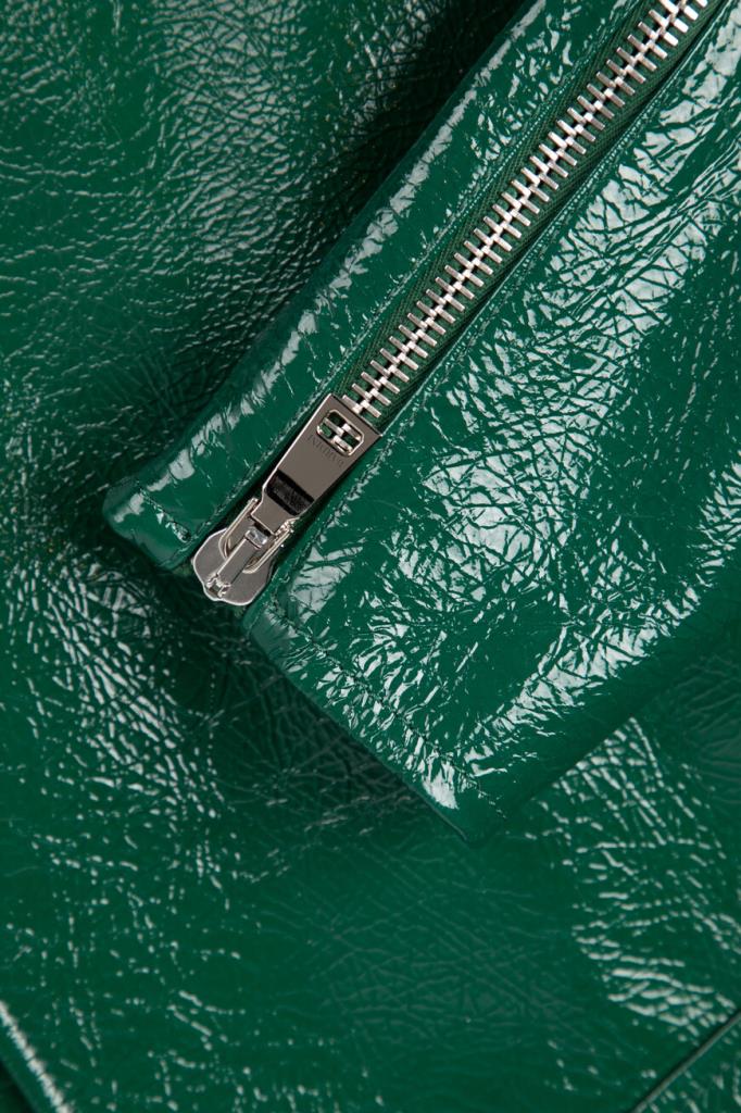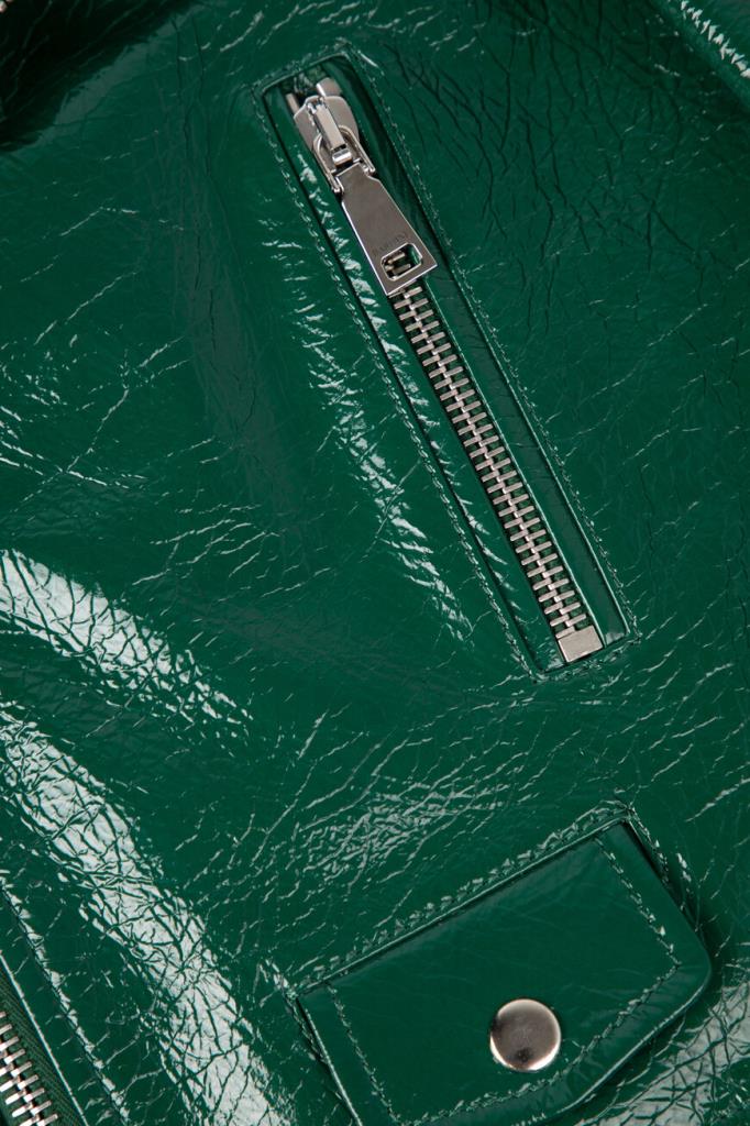 Куртка зелёного цвета от Bardini станет ярким акцентом Вашего образа. Модель изготовлена из блестящей зернистой кожи и оснащена застёжкой на косую молнию с брендированным бегунком. Особенностями изделия стали четыре кармана и шлевки на манжете снизу.