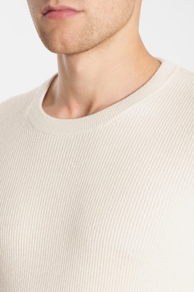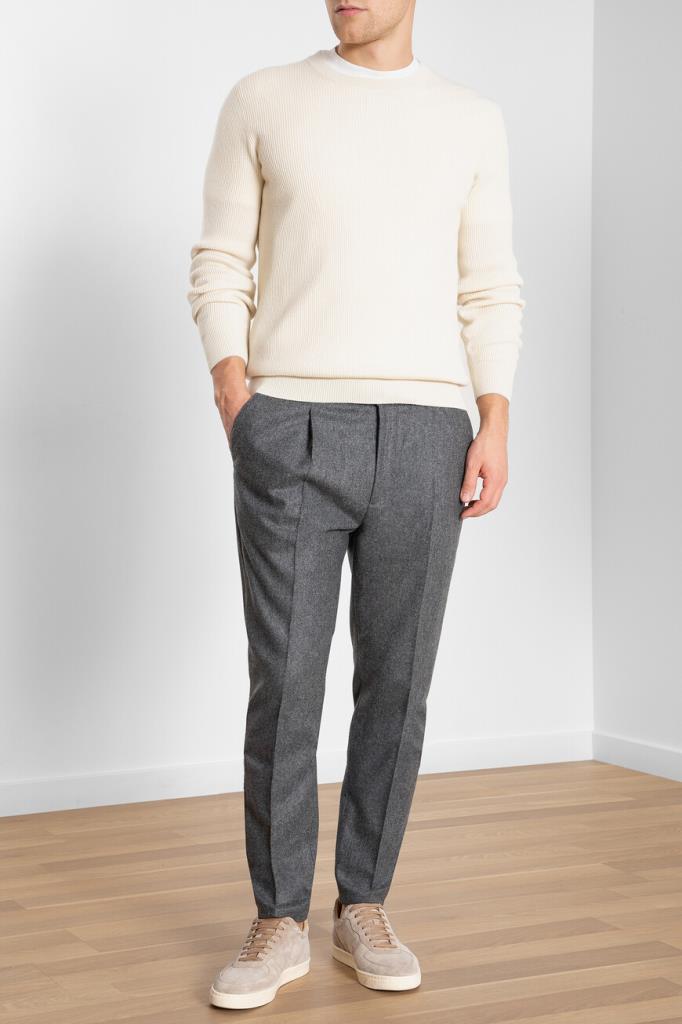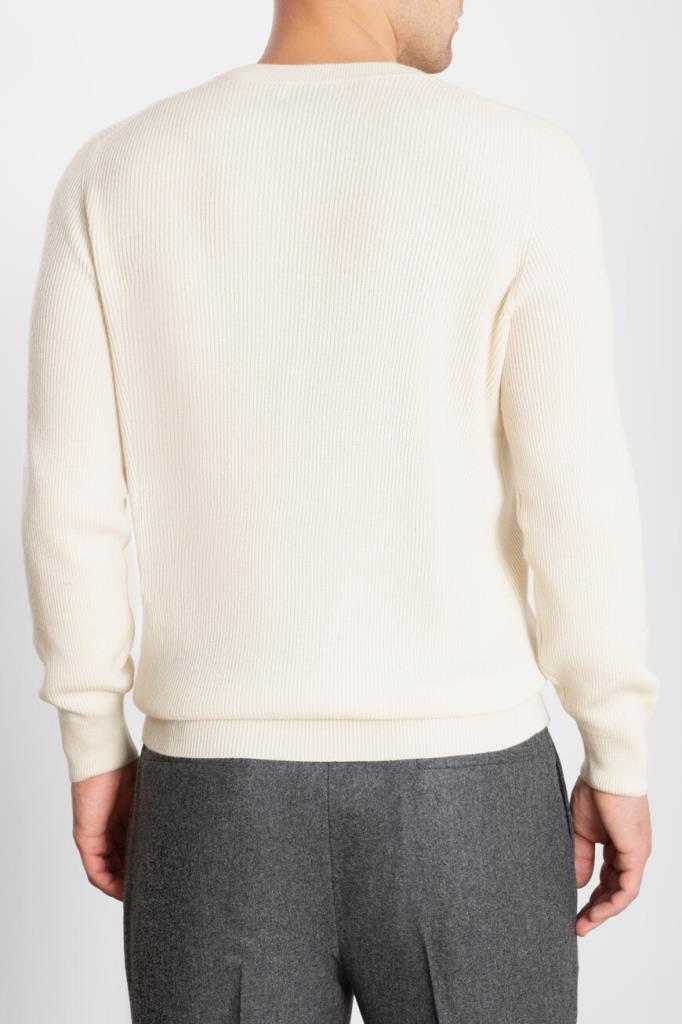 Базовый свитер Brunello Cucinelli выполнен из 100% кашемира. Бренд уже многие годы остается лидером в производстве кашемировых изделий, поэтому пряжа отличается особой мягкостью. Светло-бежевая модель прямого кроя, выполненная из трикотажа кашкорсе, станет незаменимой частью базового гардероба на холодный сезон. Для создания неформального делового образа носите свитер с темно-синими прямыми брюками из той же коллекции.