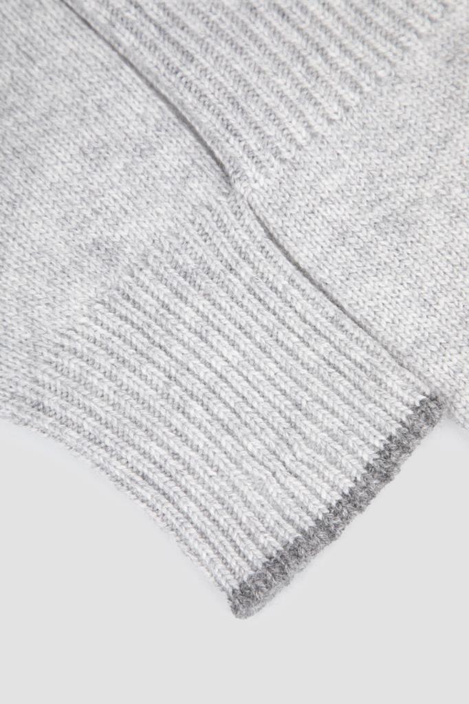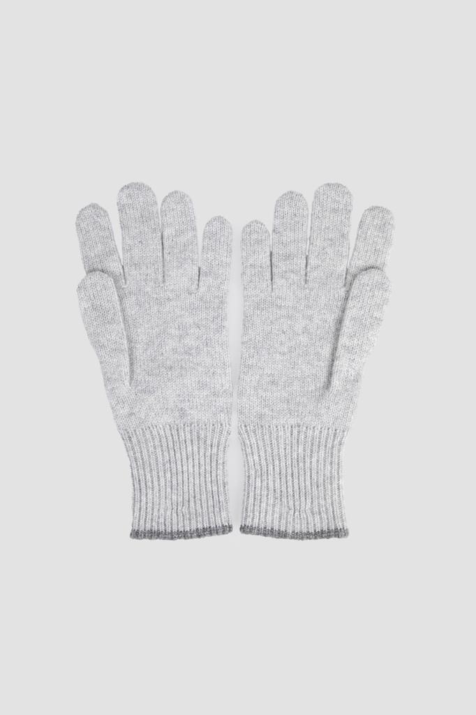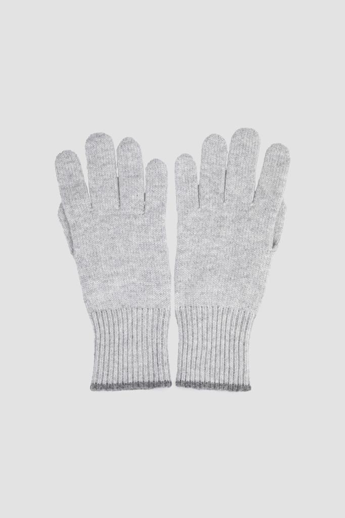 Светло-серые перчатки BRUNELLO CUCINELLI с манжетой на резинке. Уютная модель связана из мягкой пряжи на основе кашемирового трикотажа, который обеспечивает одновременно тепло, защиту и лёгкость при носке. Широкие эластичные манжеты плотно облегают запястья, не пропуская холодный воздух внутрь. Сочетайте изделие с шапкой в тон из той же коллекции.
