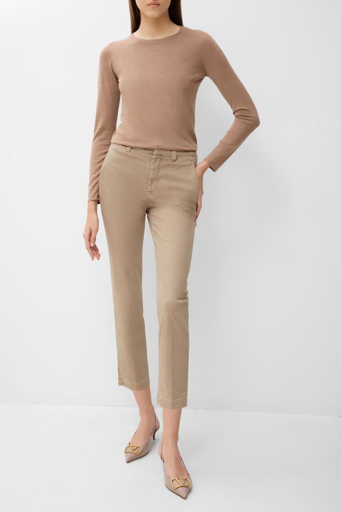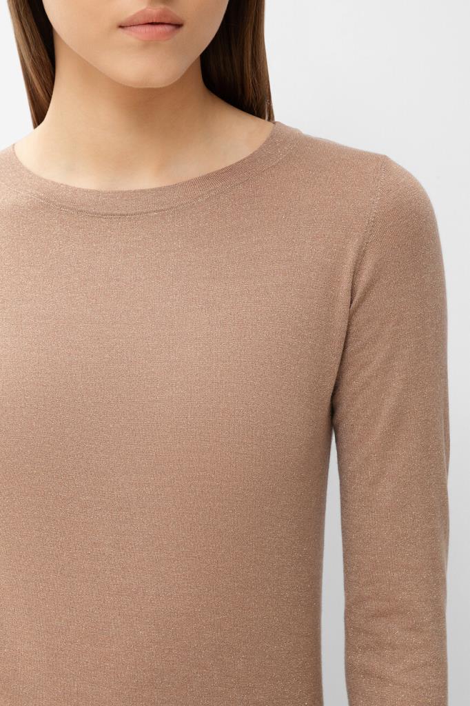 Пуловер BRUNELLO CUCINELLI с блестящим декором. Для создания повседневной модели чулочной вязки используется мягкий трикотаж на основе кашемира, гладкого шёлка и прочного нейлона с вкраплениями золотистой люрексовой нити. Фасон изделия предполагает прилегающий силуэт и круглый вырез горловины на резинке.