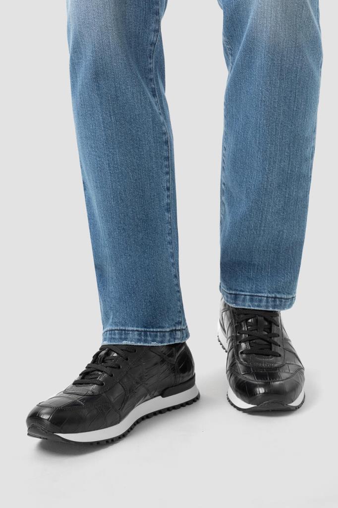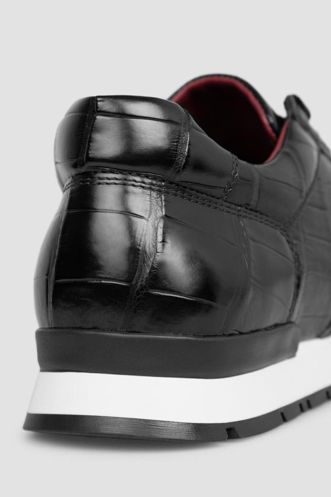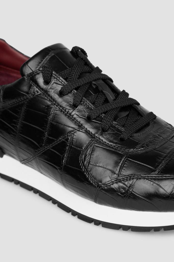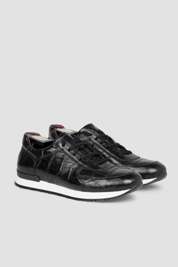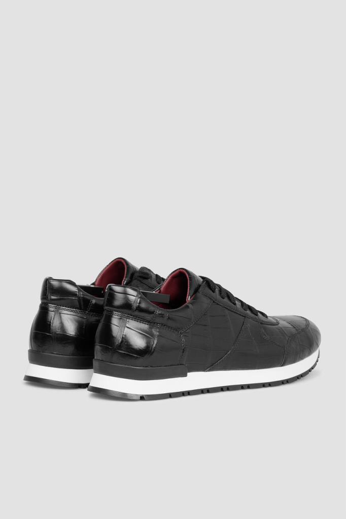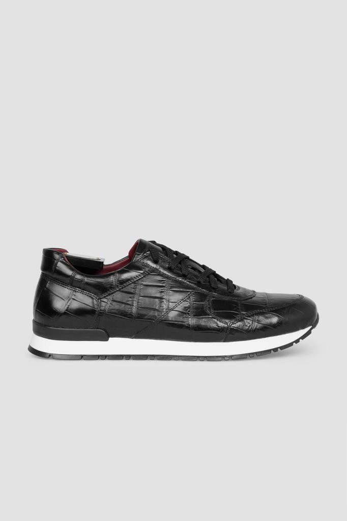 Кроссовки чёрного цвета от FARGONI. Изделие выполнено из натуральной кожи крокодила. Задник и язычок модели наполнены вспененным полимерным материалом, который обеспечивает максимальный комфорт внутреннего пространства и отличное прилегание обуви.