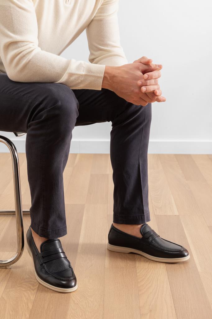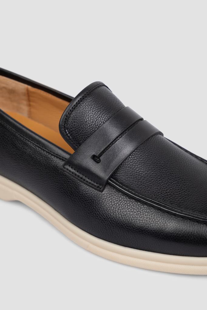 Кожаные лоферы FARGONI с рельефным округлым швом. Изделие выполнено в чёрном цвете и оснащено классическим поперечным ремешком с прорезью. Декором выступает вставка из фактурной кожи крокодила на заднике. Лоферы отличаются амортизирующей резиновой подошвой с небольшим утолщением в области широкого каблука. Гибкая подошва не утяжеляет обувь, поэтому в паре будет комфортно во время долгих прогулок.