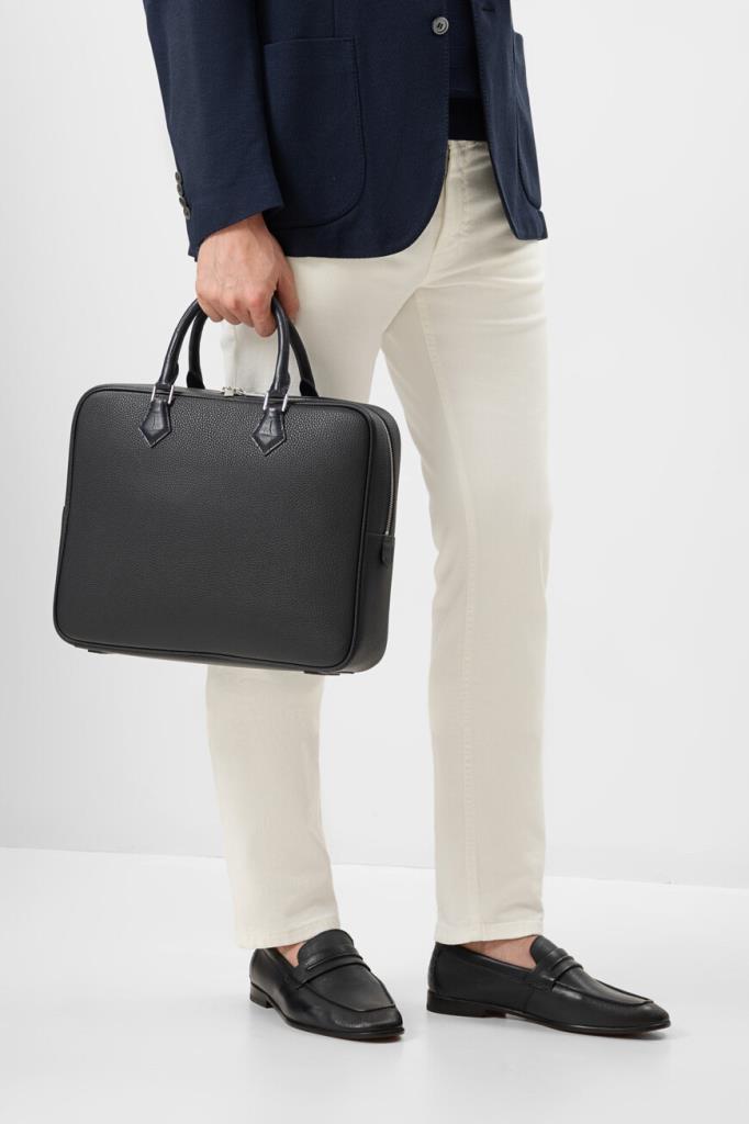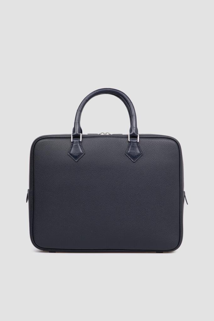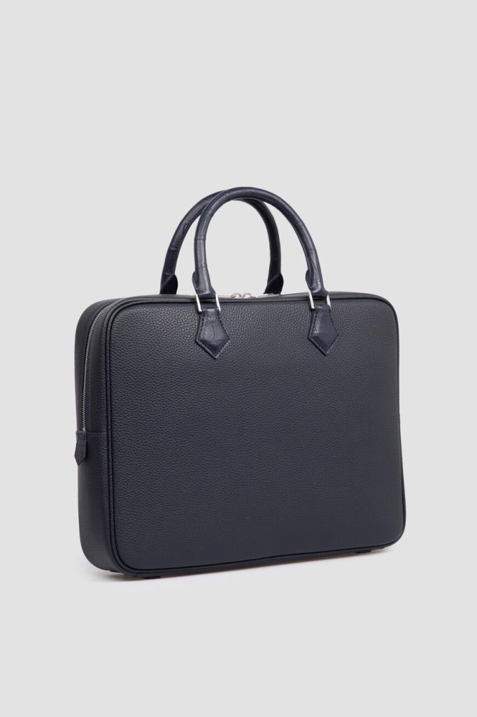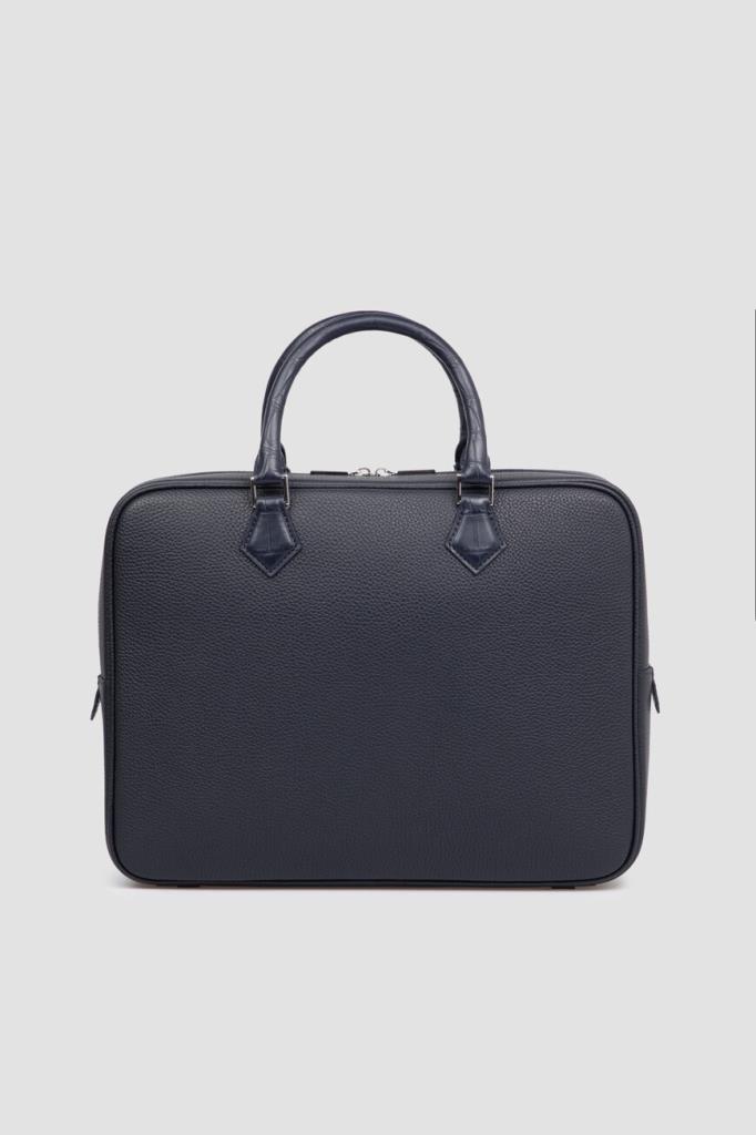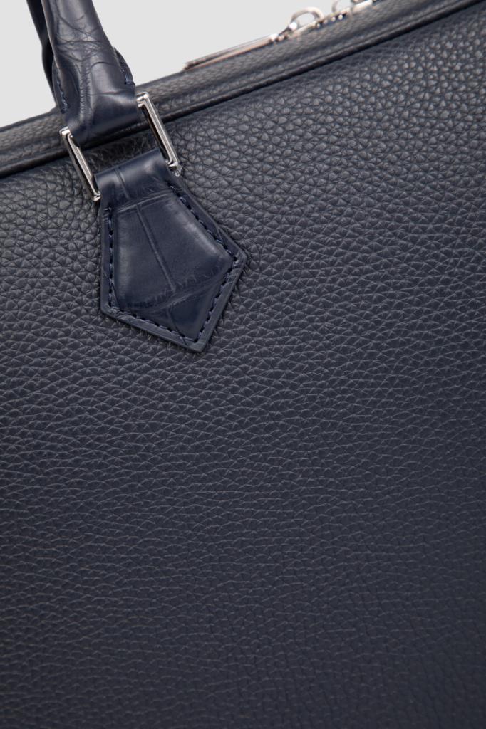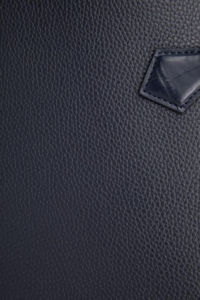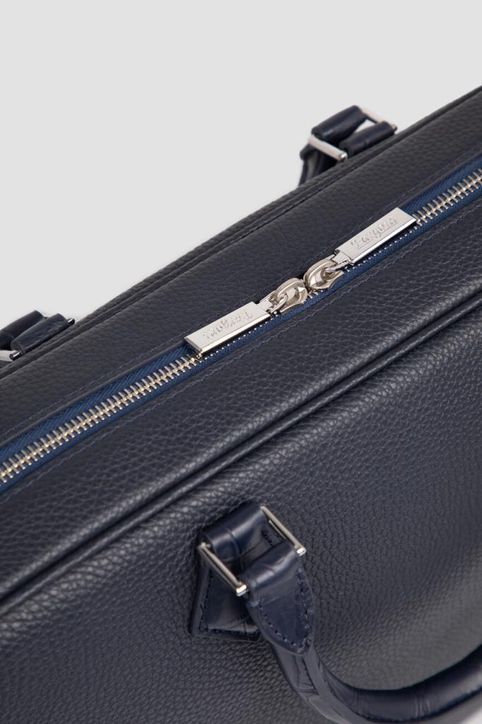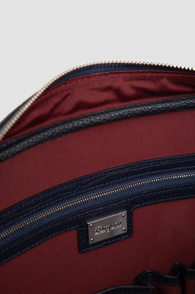 Кожаная сумка Fargoni на молнии с двумя брендированными бегунками. Изделие выполнено вручную из мягкого зернистого материала и дополнено вставками из экзотической кожи крокодила по бокам и на округлых ручках в тон. Атрибутами бренда стали гравировка на прочной декоративной фурнитуре и серебристый металлический лейбл во внутренней части.