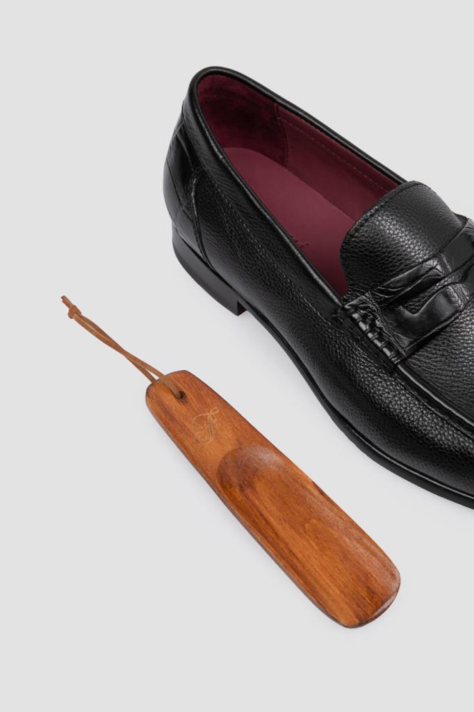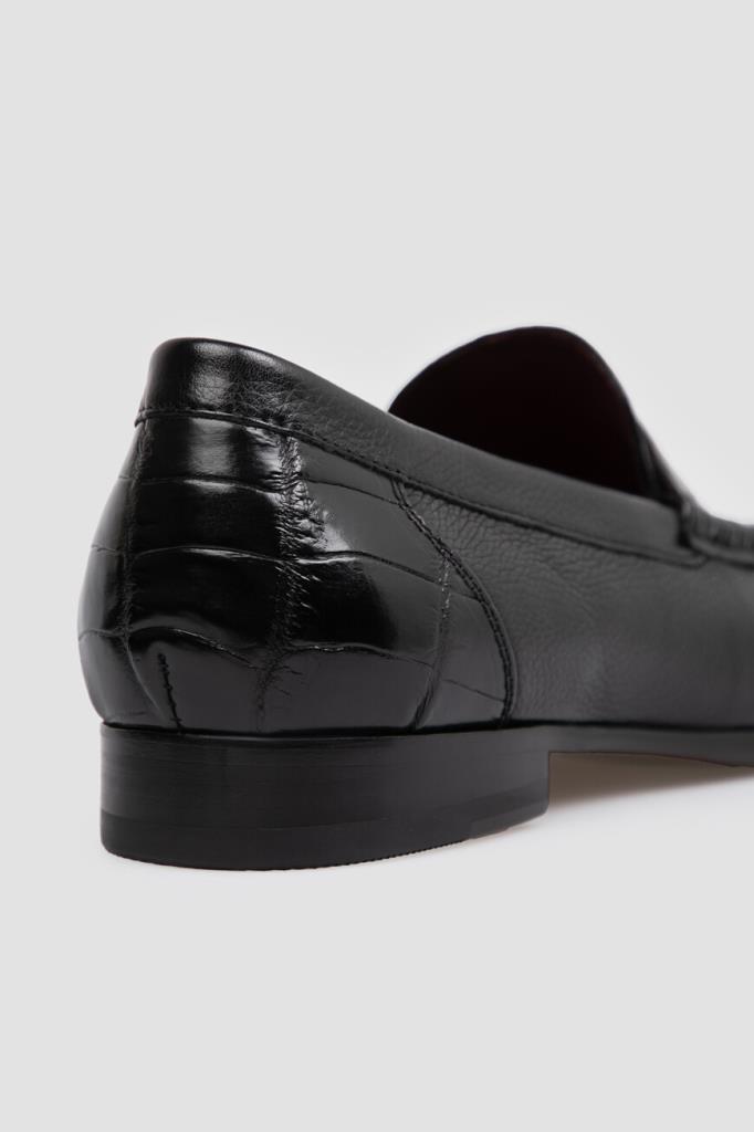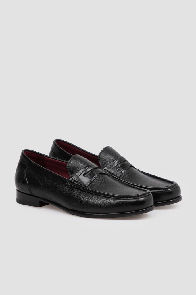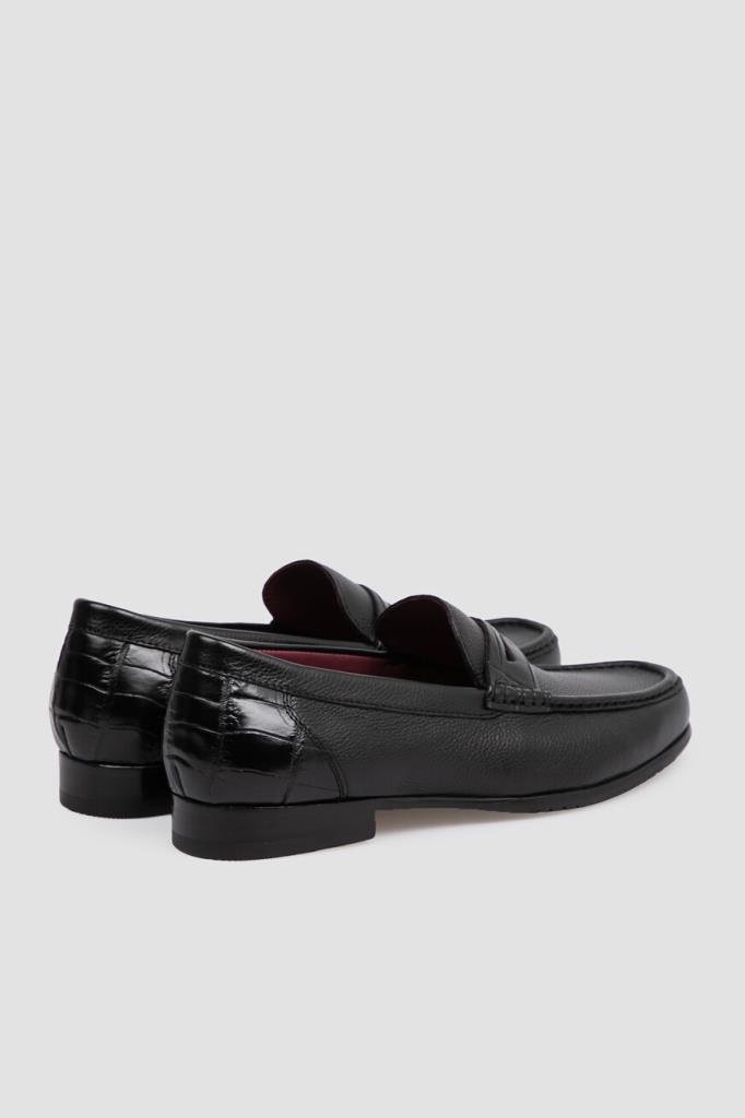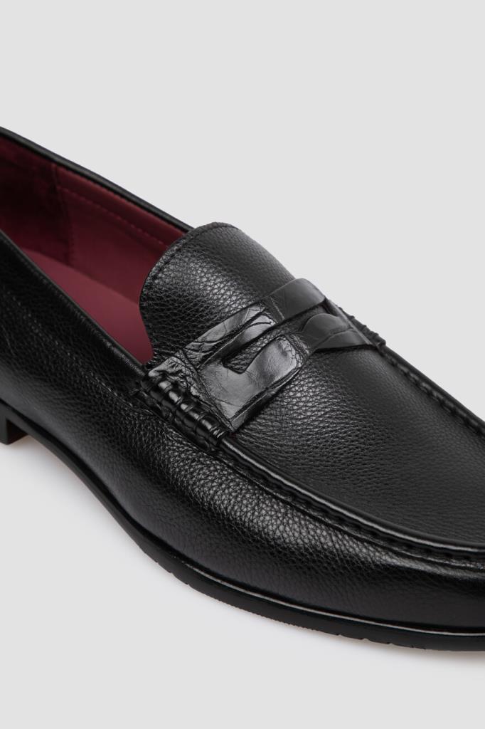 Кожаные лоферы FARGONI органично дополнят образ любой степени сложности. Традиционная модель изготовлена из мягкой зернистой кожи телёнка чёрного цвета. Изделие оснащено вставками из фактурной кожи крокодила на мыске и заднике в тон и дополнено бордовой внутренней отделкой. На принадлежность удобной пары бренду указывает тиснёный логотип на стельках.