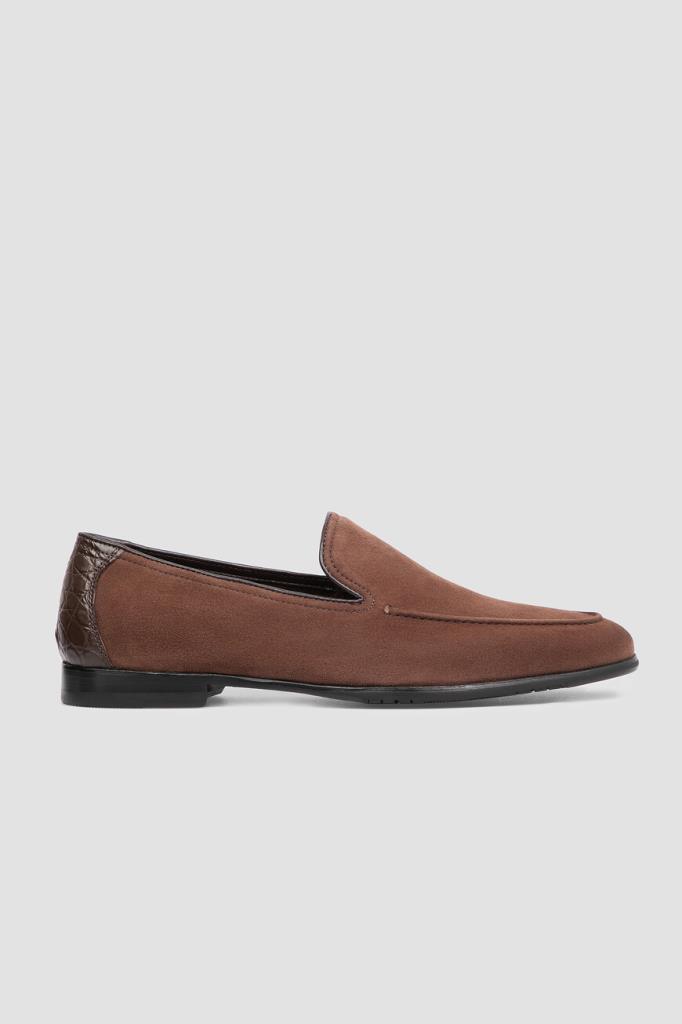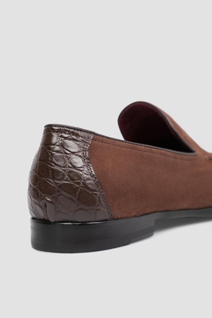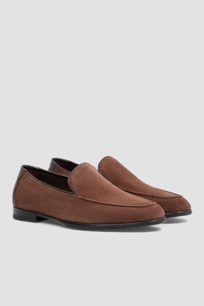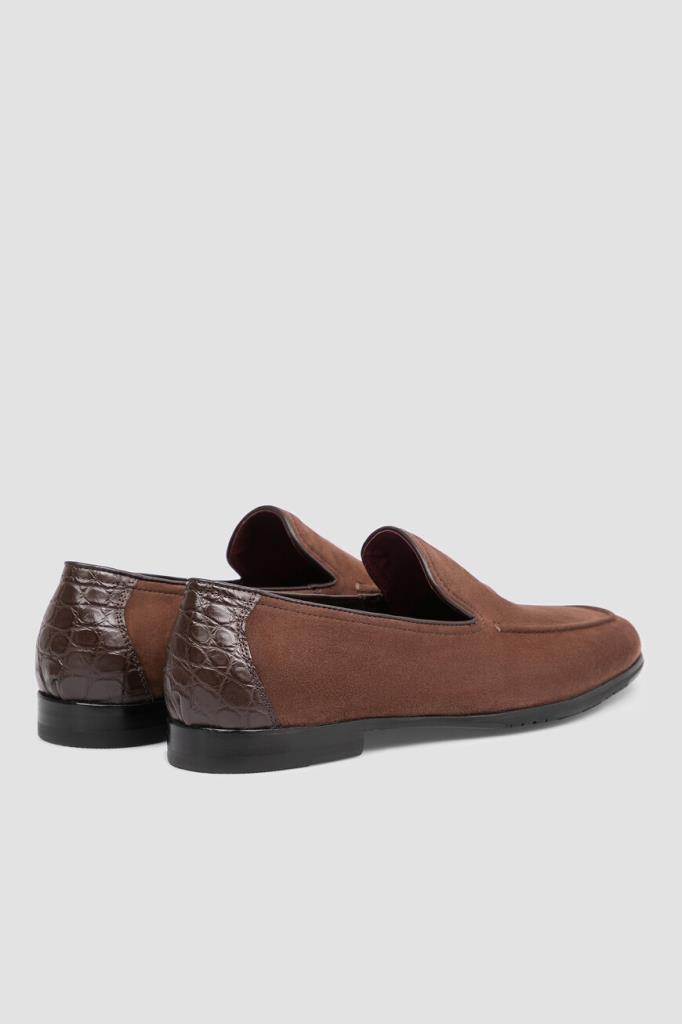Пенни-лоферы FARGONI выполнены вручную из мягкой бархатистой замши. Отличительными особенностями модели коричневого цвета являются традиционный для лоферов рельефный округлый шов и тёмно-коричневые кожаный кант и вставка из фактурной кожи крокодила на заднике. В комплекте - коричневый деревянный рожок для удобства надевания.