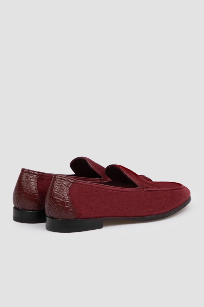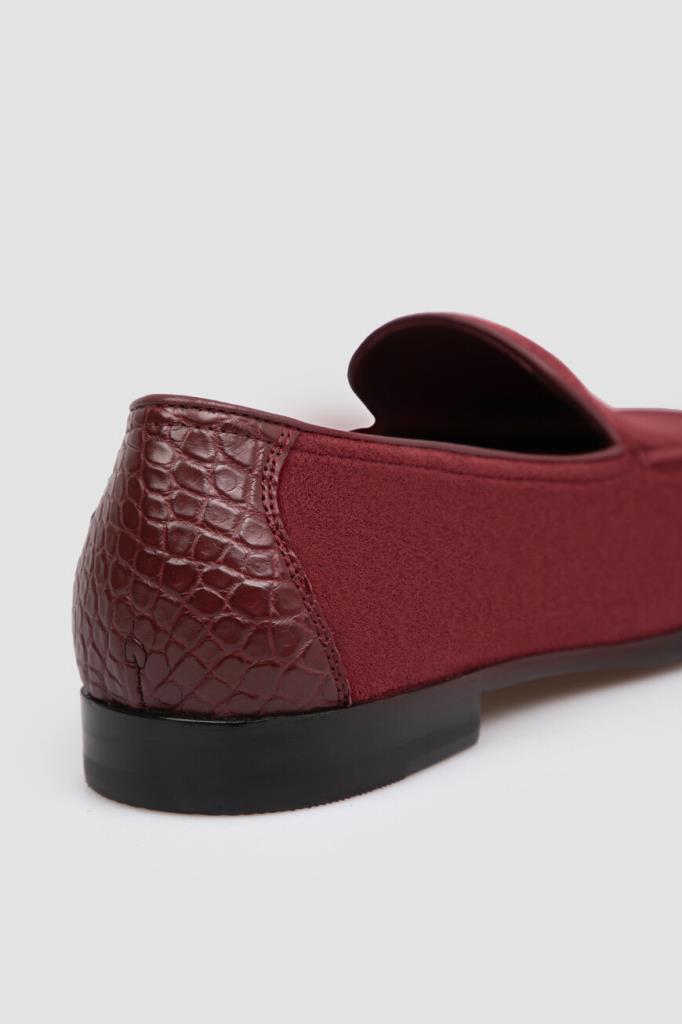 Пенни-лоферы FARGONI выполнены в насыщенном бордовом оттенке. Для создания модели с рельефным округлым швом используется прочная мягкая замша с бархатистой фактурой. Тщательно отполированный вручную материал немного тянется, поэтому пара комфортно облегает стопу, адаптируясь к её форме. Особенностью изделия стала вставка из фактурной кожи крокодила на заднике в тон.