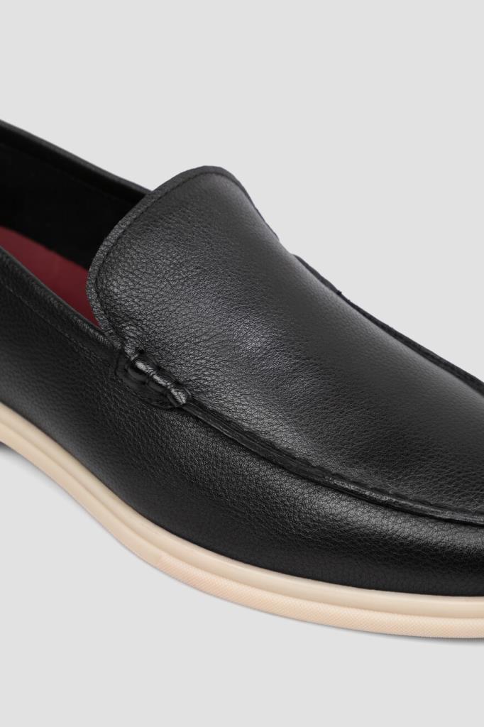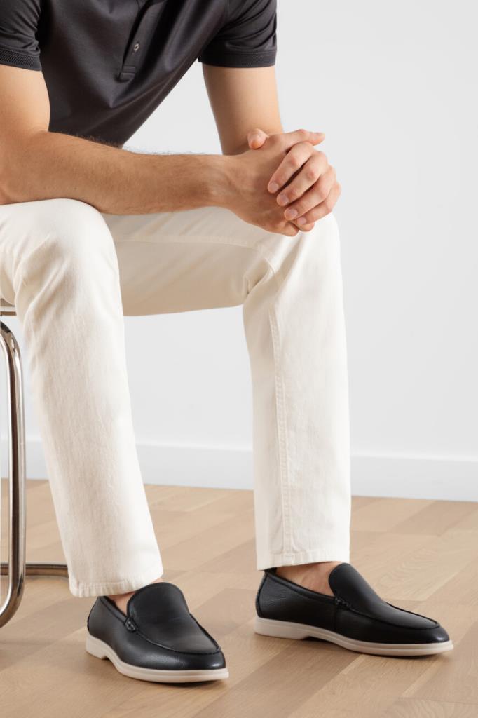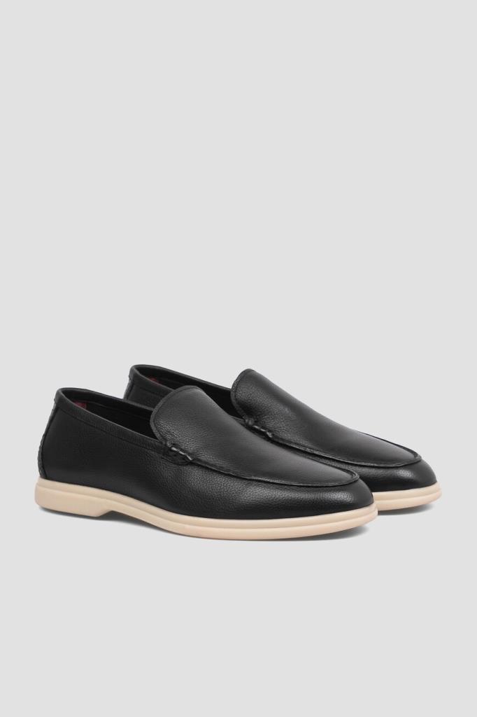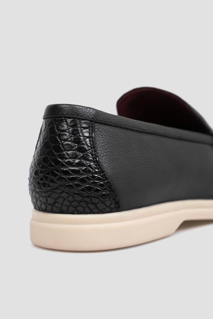 Лоферы из мягкой зернистой кожи телёнка от FARGONI. Изделие выполнено в базовом чёрном цвете и оснащено вставкой из фактурной кожи крокодила на заднике в тон. Овальный миндалевидный носок подчёркнут традиционным для лоферов рельефным округлым швом. Классическая пара гармонично дополнит и непринуждённый повседневный образ, и нестрогий офисный.