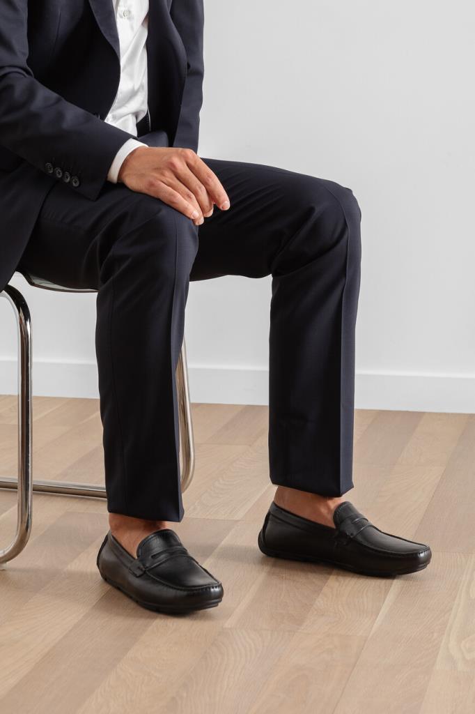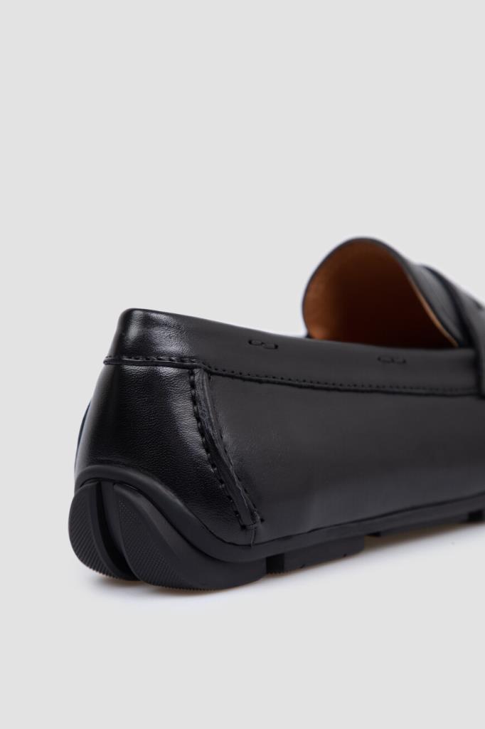 Классические мокасины чёрного цвета от FARGONI. Конструкция модели из гладкой натуральной кожи телёнка предполагает закруглённый носок и укреплённый задник. Особенностями изделия стали поперечный ремешок с прорезью в тон и коричневая внутренняя отделка из кожи и замши.