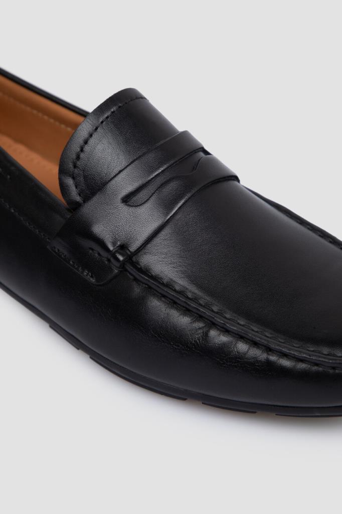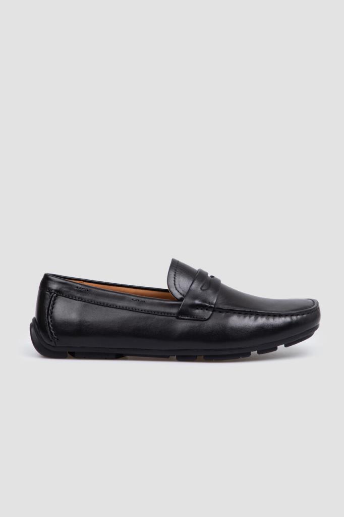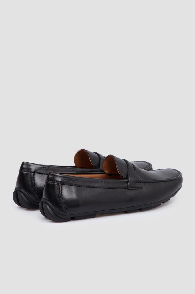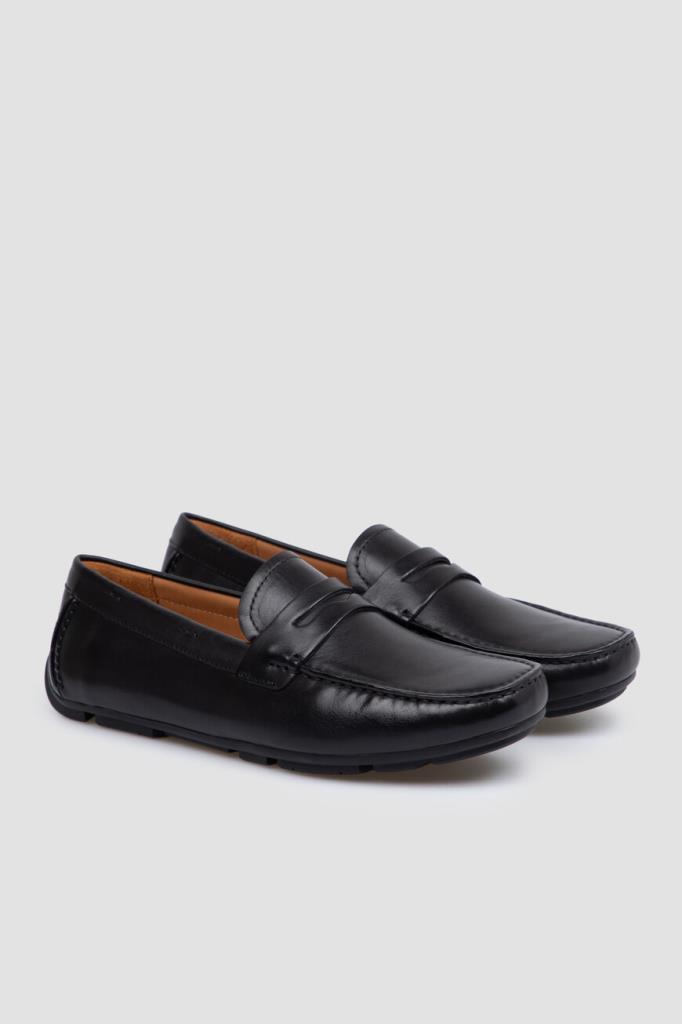 Классические мокасины чёрного цвета от FARGONI. Конструкция модели из гладкой натуральной кожи телёнка предполагает закруглённый носок и укреплённый задник. Особенностями изделия стали поперечный ремешок с прорезью в тон и коричневая внутренняя отделка из кожи и замши.