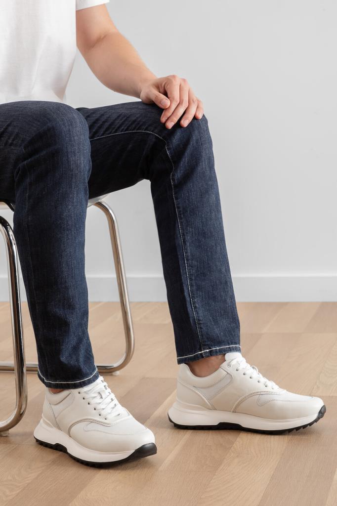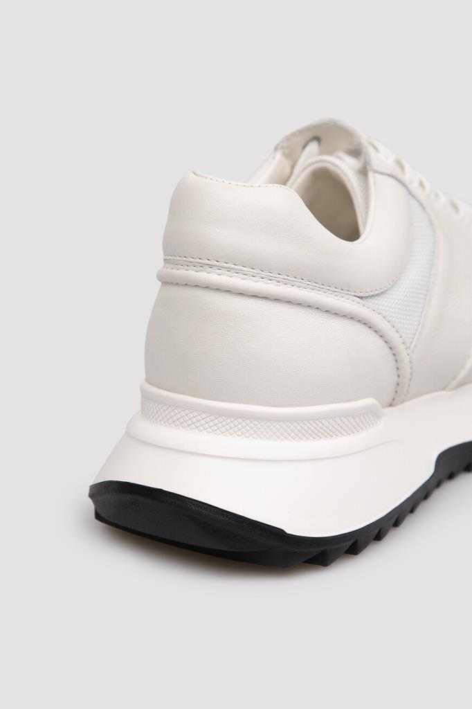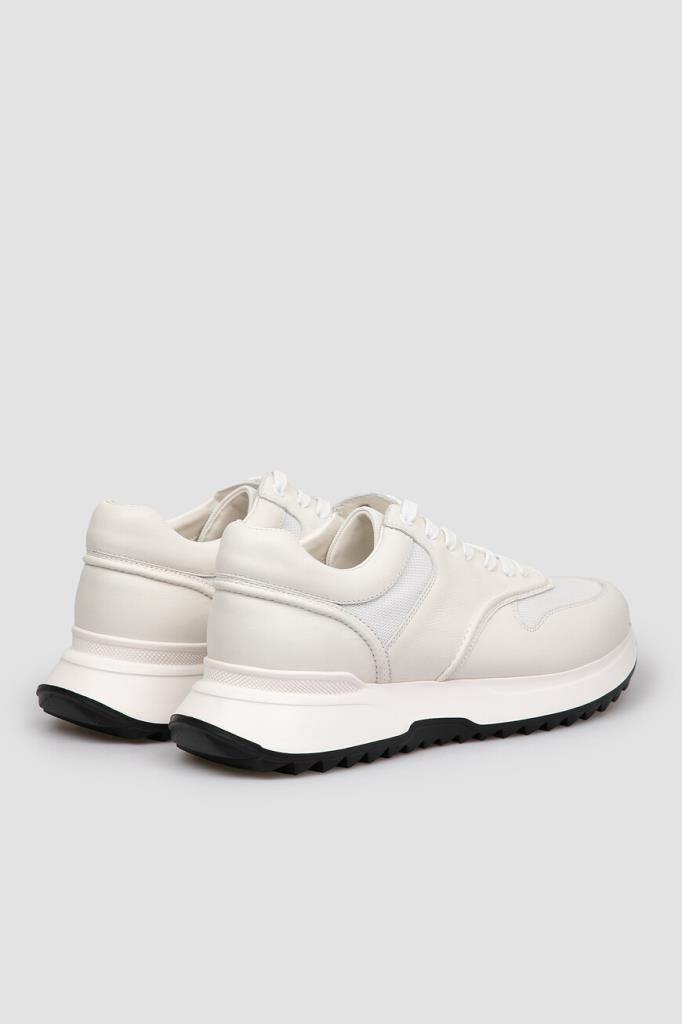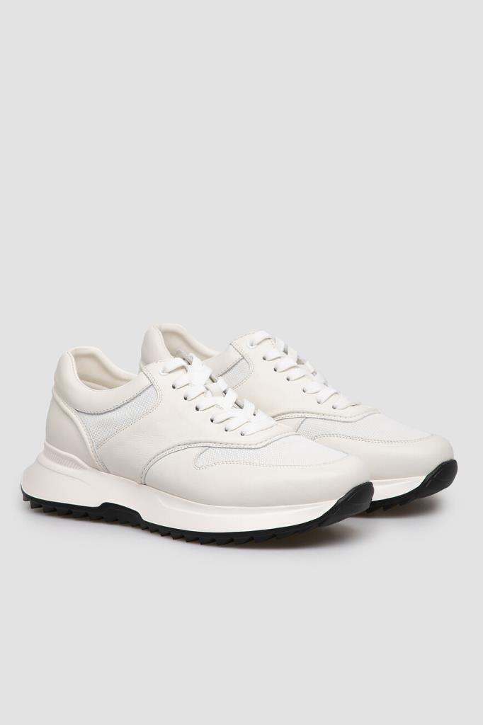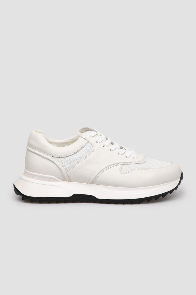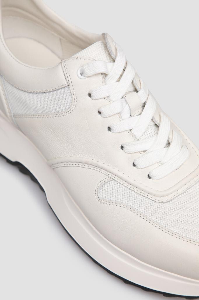 Кроссовки из двух видов материалов от FARGONI. Пара выполнена из гладкой телячьей кожи со вставками из сетчатого фактурного текстиля на носке, язычке и боковинах. Отличительными особенностями модели стали перекрёстная функциональная шнуровка и рельефный кант спереди и сзади в тон. Изделие установлено на объёмную чёрно-белую подошву из натуральной резины с рифлением снизу.