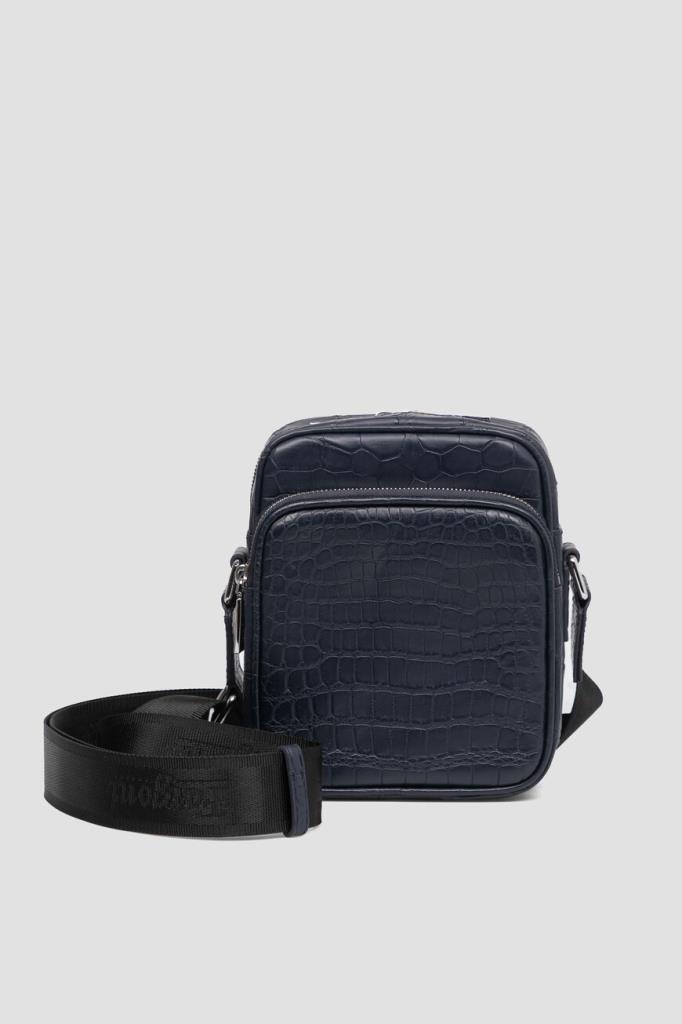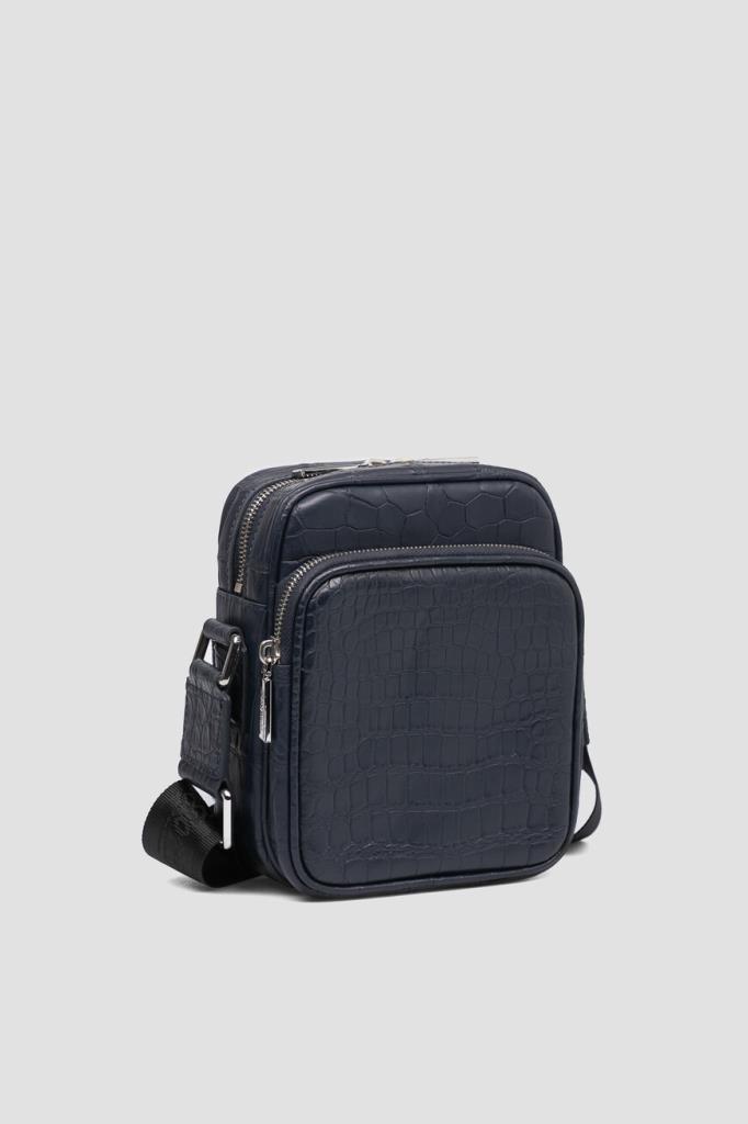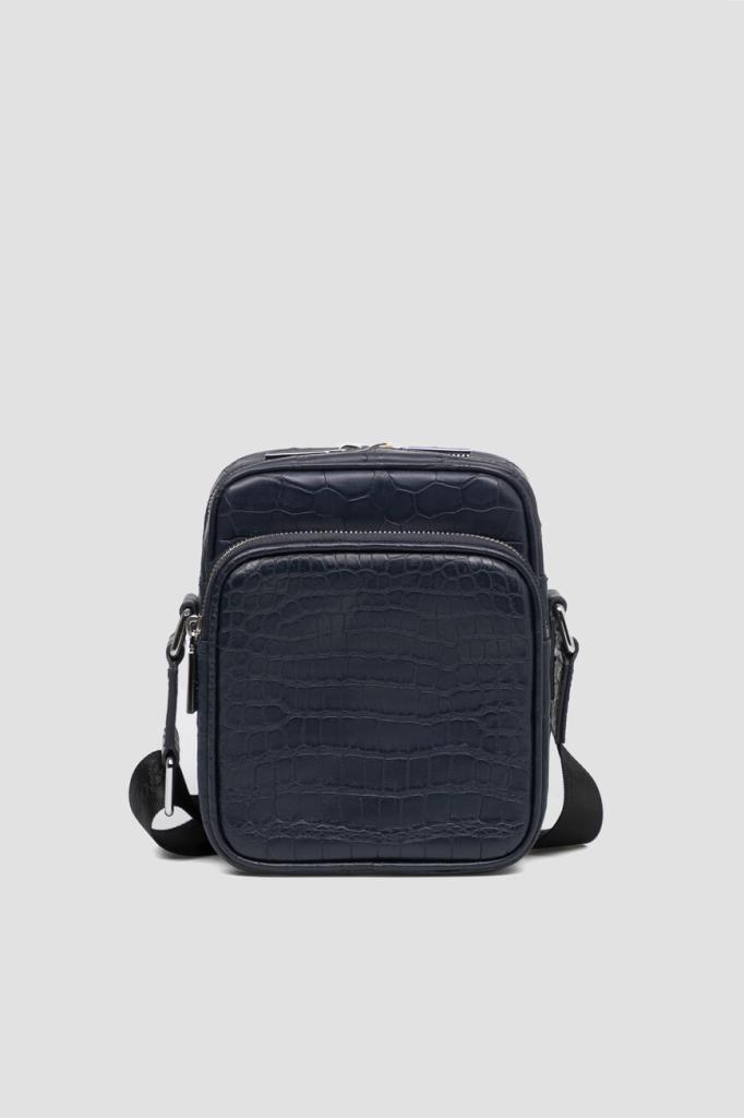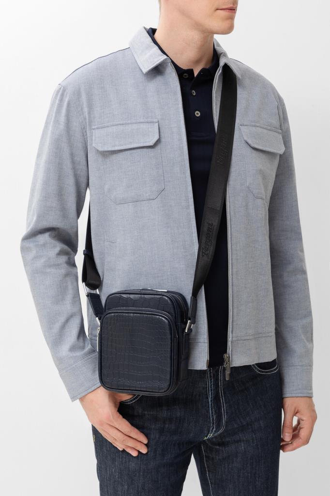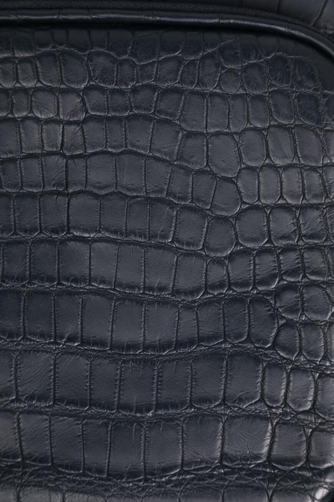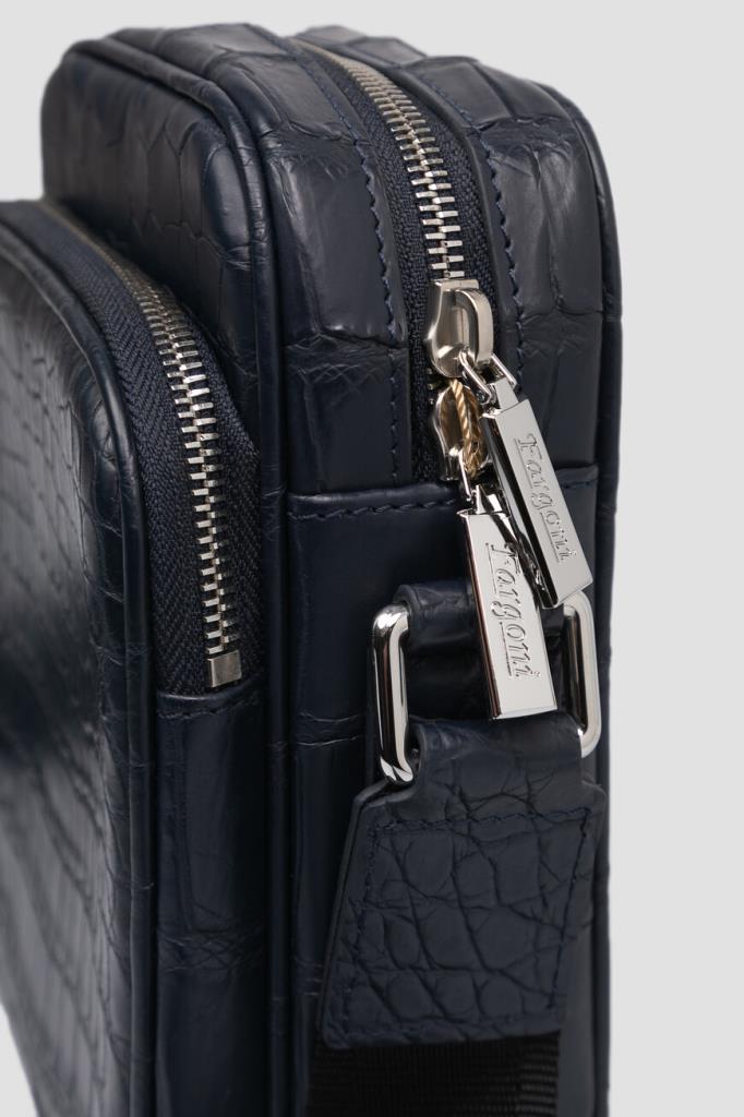 Сумка тёмно-синего цвета от FARGONI. Аксессуар изготовлен из мягкой высококачественной кожи крокодила, которая отличается особой прочностью и долговечностью. Атрибутами Дома стали выгравированные логотипы на серебристых металлических бегунках.