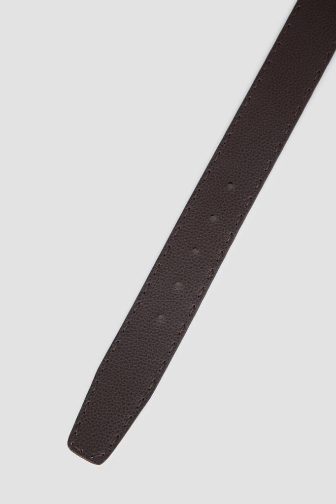 Тёмно-коричневый ремень JOHNNY MANGLANI из зернистой кожи телёнка. Аксессуар прошит по краю и дополнен квадратной пряжкой из серебристого металла с рифлением по бокам. Пряжку надёжно зафиксирует подвижный кожаный тренчик.